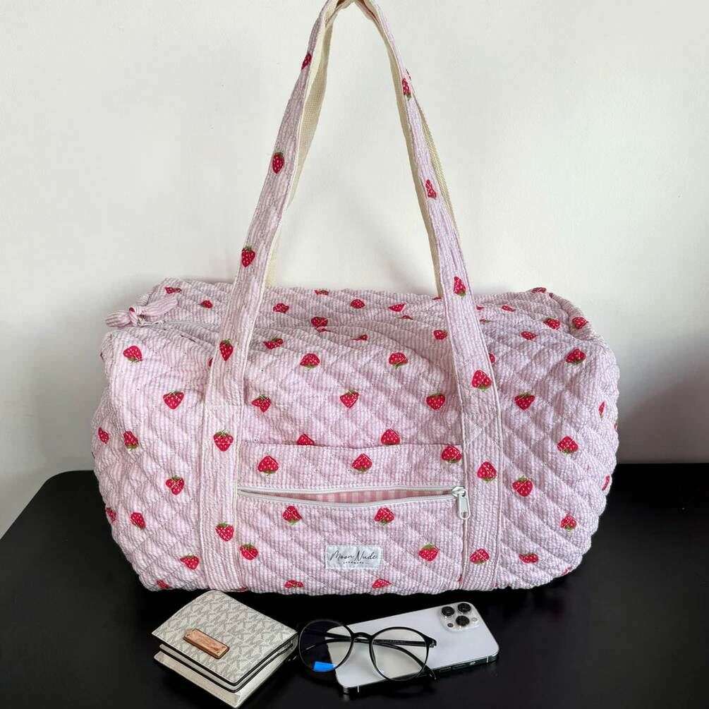 Presentado por la marca Moon Nude, este bolso de lona grande color fresa para mujer en color rosa/rojo está hecho de 100 % algodón. Mide 30 cm (alto) x 50 cm (ancho) x 28 cm (profundidad). Se recomienda lavar a mano en agua fría con un detergente suave, o lavar a máquina del revés en ciclo delicado. para mantener esta bolsa en buenas condiciones. Todos los bolsos vienen completos con un embalaje color nude lunar. El bolso de lona grande Moon Nude Strawberry - Rosa/Rojo presenta un hermoso diseño acolchado hecho a mano. Este bolso cuenta con un bolsillo exterior con cremallera, un interior espacioso y dos asas grandes, perfecto para escapadas de fin de semana o para llevar muchas pertenencias.