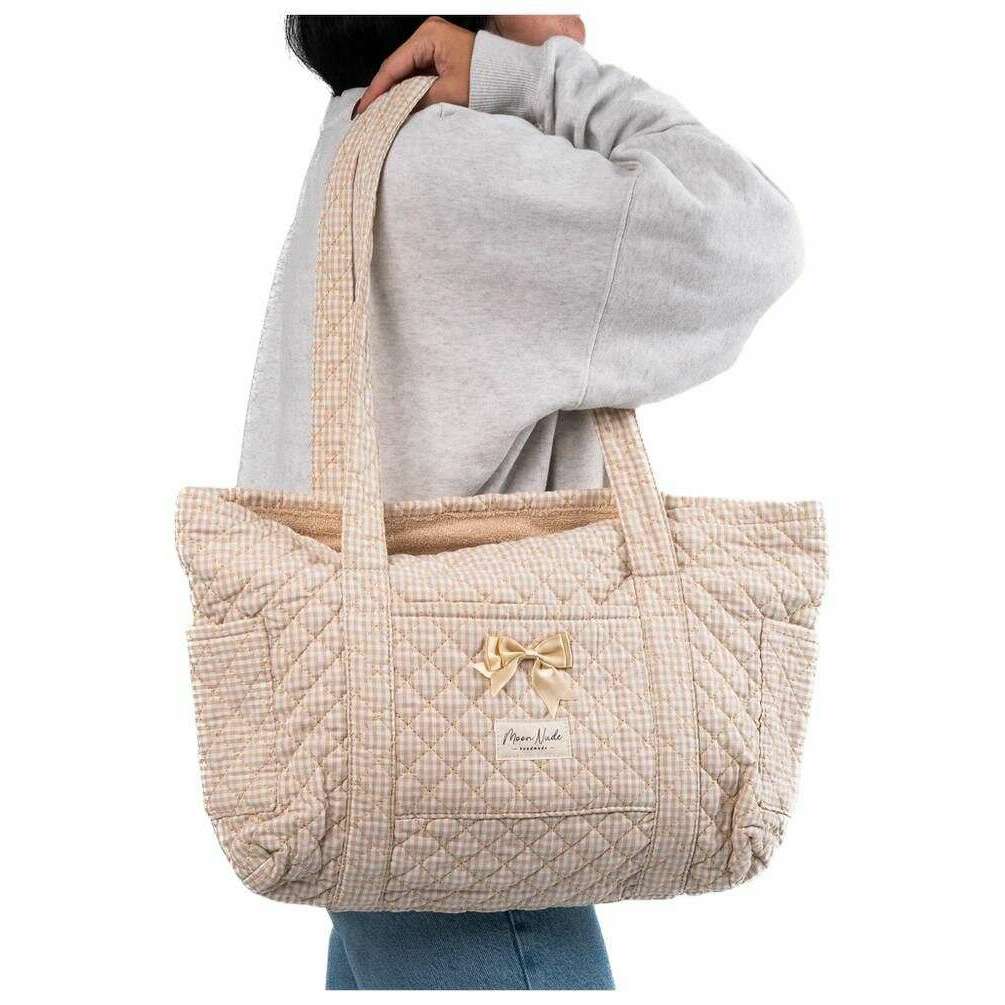 Este bolso tote para mujer bien hecho de Moon Nude viene en color crema/beige y está fabricado en 100% algodón. Mide 30 cm (alto) x 42 cm (ancho) x 12 cm (profundidad). Se recomienda lavar a mano en agua fría con un detergente suave, o lavar a máquina del revés en ciclo delicado. para mantener esta bolsa en buenas condiciones. Todos los bolsos vienen completos con un embalaje color nude lunar. El bolso tote Moon Nude - Crema/Beige presenta un hermoso diseño acolchado hecho a mano. Perfecto para llevar, ya sea para viajar o para el uso diario. Este bolso tote tiene un cierre de cremallera para mayor seguridad, correas largas para los hombros para mayor comodidad y un interior espacioso para todas tus pertenencias.
