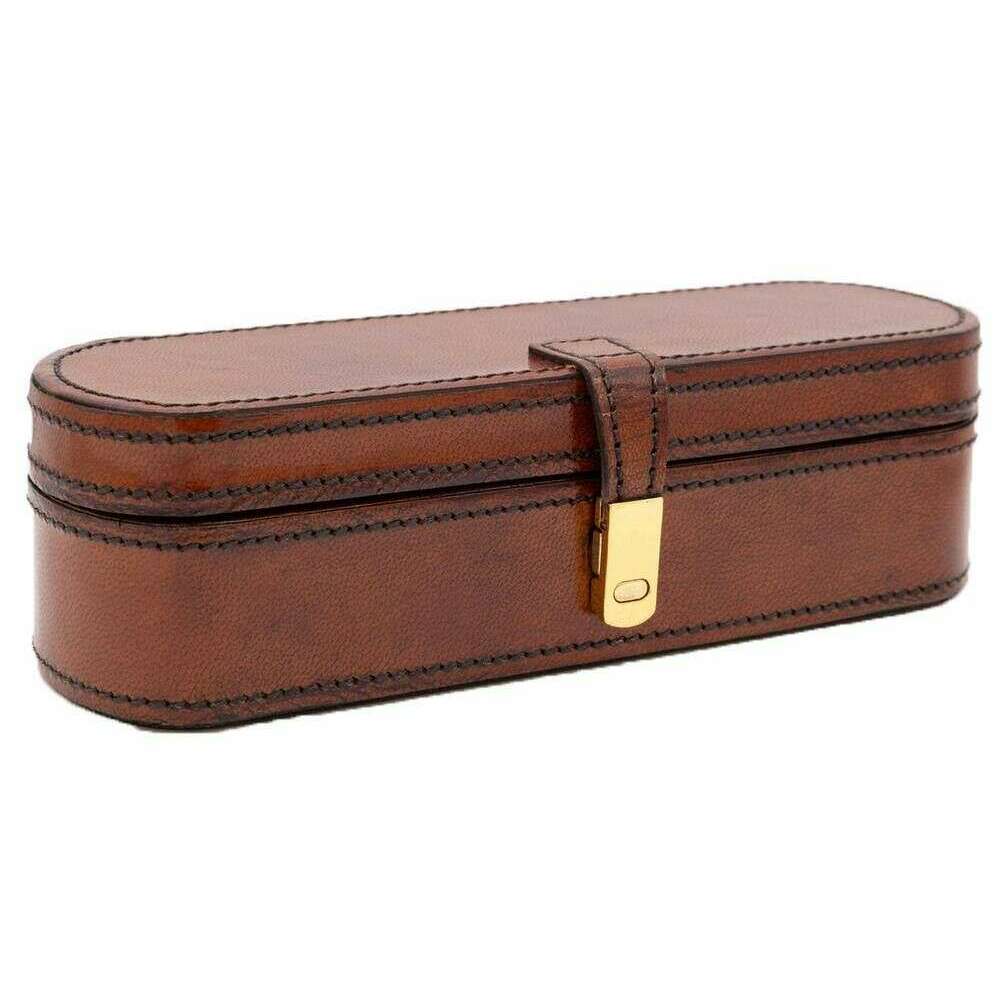 Joyero de esquina redondeada de cuero Orton West - Brown