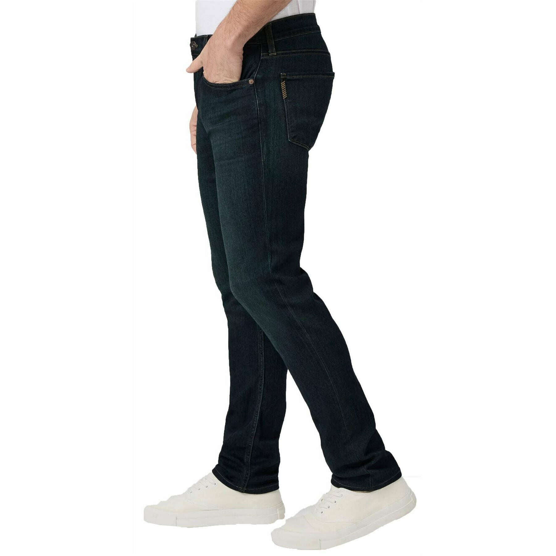 • Tiro de 10", Entrepierna de 33", Abertura de pierna de 14", Se estrecha desde la rodilla hasta la abertura de la pierna, Alta elasticidad, Transcend Denim