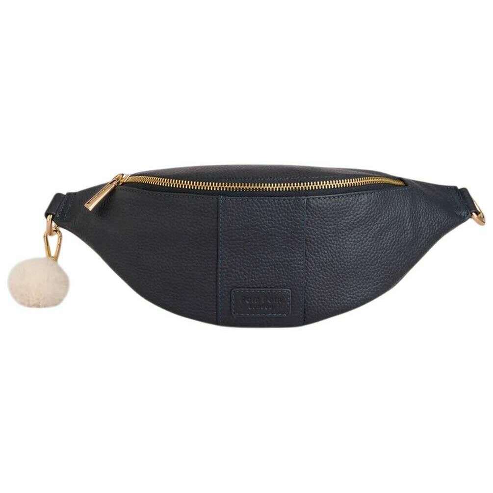 Esta riñonera para mujer está diseñada por la marca Pom Pom London en color azul marino y está confeccionada 100% en piel de plena flor. Mide 12 cm (alto) x 33 cm (ancho) x 11 cm (profundidad). Todas las bolsas vienen completas con un embalaje de pompones london. La riñonera Pom Pom London - Azul marino está diseñada para cualquiera que busque una opción elegante y con manos libres que no comprometa la elegancia. Su silueta elegante y su atractivo moderno lo convierten en el accesorio perfecto para días en movimiento, aventuras de viaje o recados cotidianos. Confeccionado con cuero de plena flor, ofrece durabilidad y un acabado lujoso. El bolso cuenta con una correa de nailon versátil que se puede ajustar para un ajuste cómodo y personalizado, ya sea que se use alrededor de la cintura o cruzado. Para una organización práctica, incluye un compartimento externo independiente con cremallera que proporciona acceso rápido a lo esencial, así como un bolsillo interno con cremallera diseñado para mantener los objetos de valor seguros y ordenados. Para completar el look, los exclusivos herrajes dorados de Pom Pom London añaden un toque de elegancia icónica que eleva este elemento esencial de todos los días.