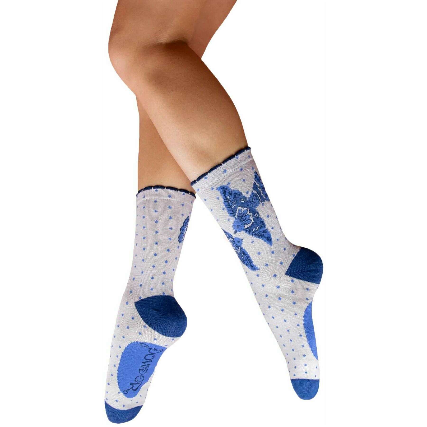Calcetines tobilleros Powder Blue Birds - Blanco/Azul