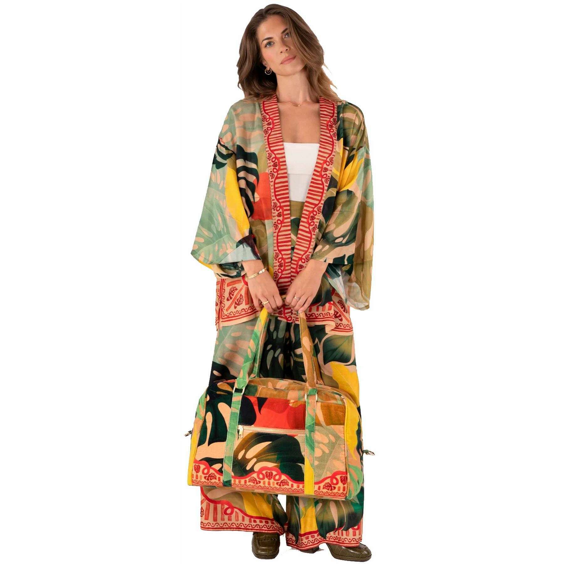 Bolsa de fin de semana Powder Exotic Leaves Luxe - Beige/Rojo/Verde