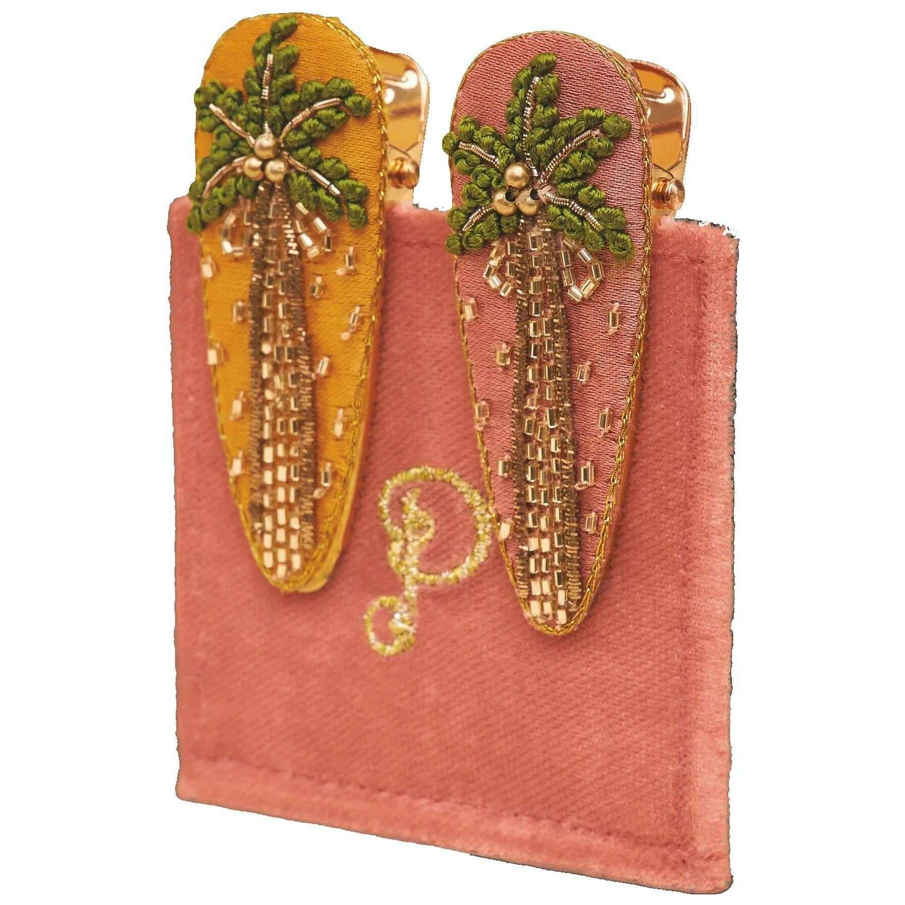 Pinzas para el pelo de palmeras en polvo - Rosa/Verde/Naranja