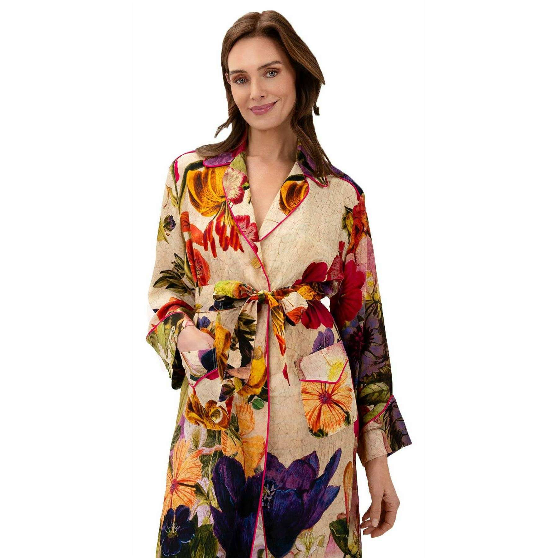 Este vestido de satén de lujo para mujer de Powder, bien hecho, viene en color crema y está fabricado 100% modal. Además, la bata color crema está diseñada con un patrón floral. Todas las batas vienen completas con etiquetas en polvo. El vestido de satén Powder Posy Lux - Crema tiene un corte magnífico y un acabado brillante exquisito que lo convierte en el vestido ideal para la colección de cualquier mujer. Los botones cubiertos y la cintura anudada te permiten usarlo de la forma que mejor se adapte a tu estilo. La textura lujosa y natural y los magníficos diseños florales de gran tamaño se combinan para hacer de este vestido una pieza verdaderamente elegante.