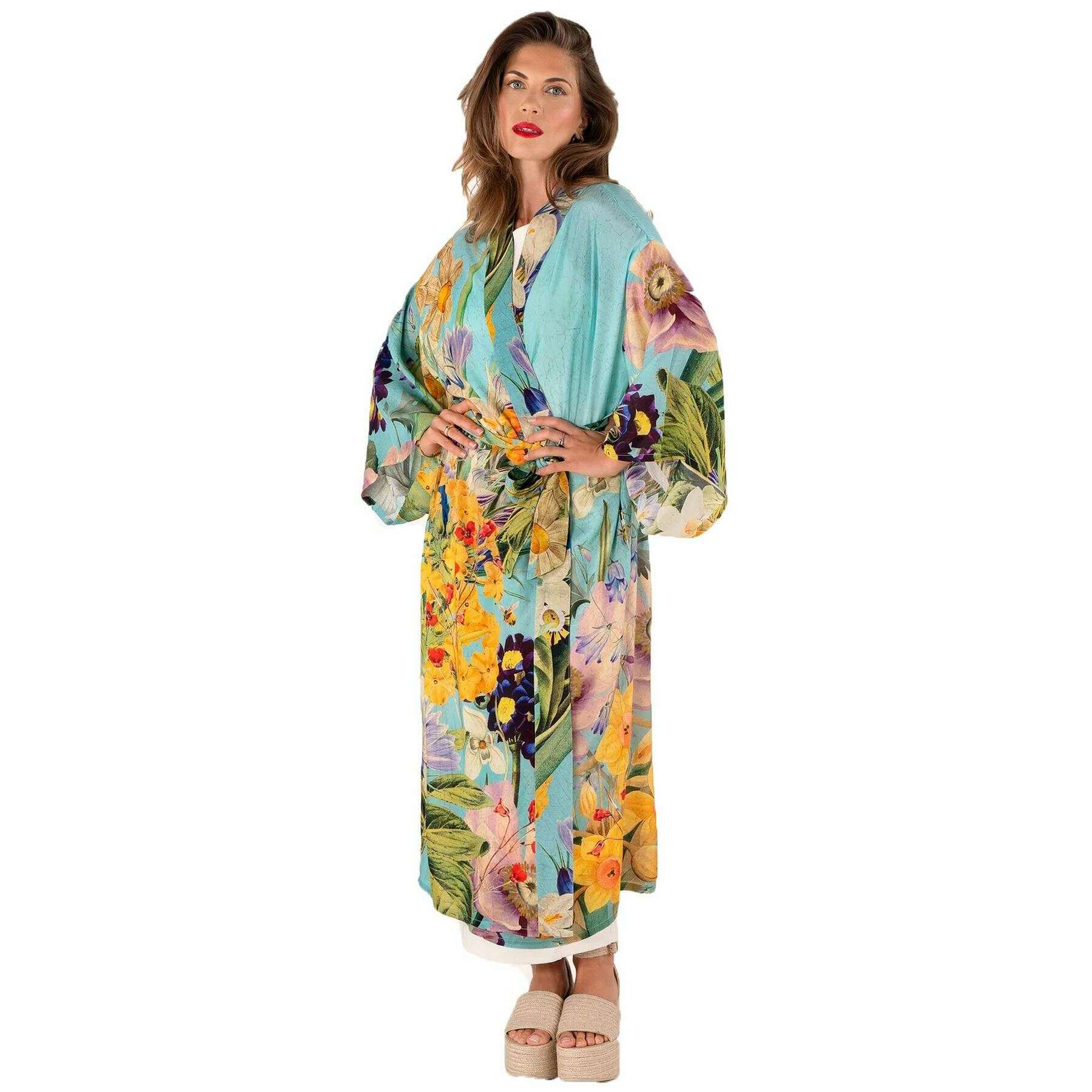 Vestido estilo kimono Powder Spring Flora - Azul/Verde/Amarillo