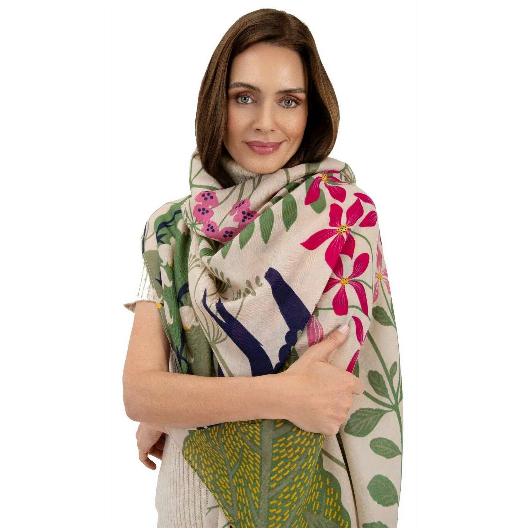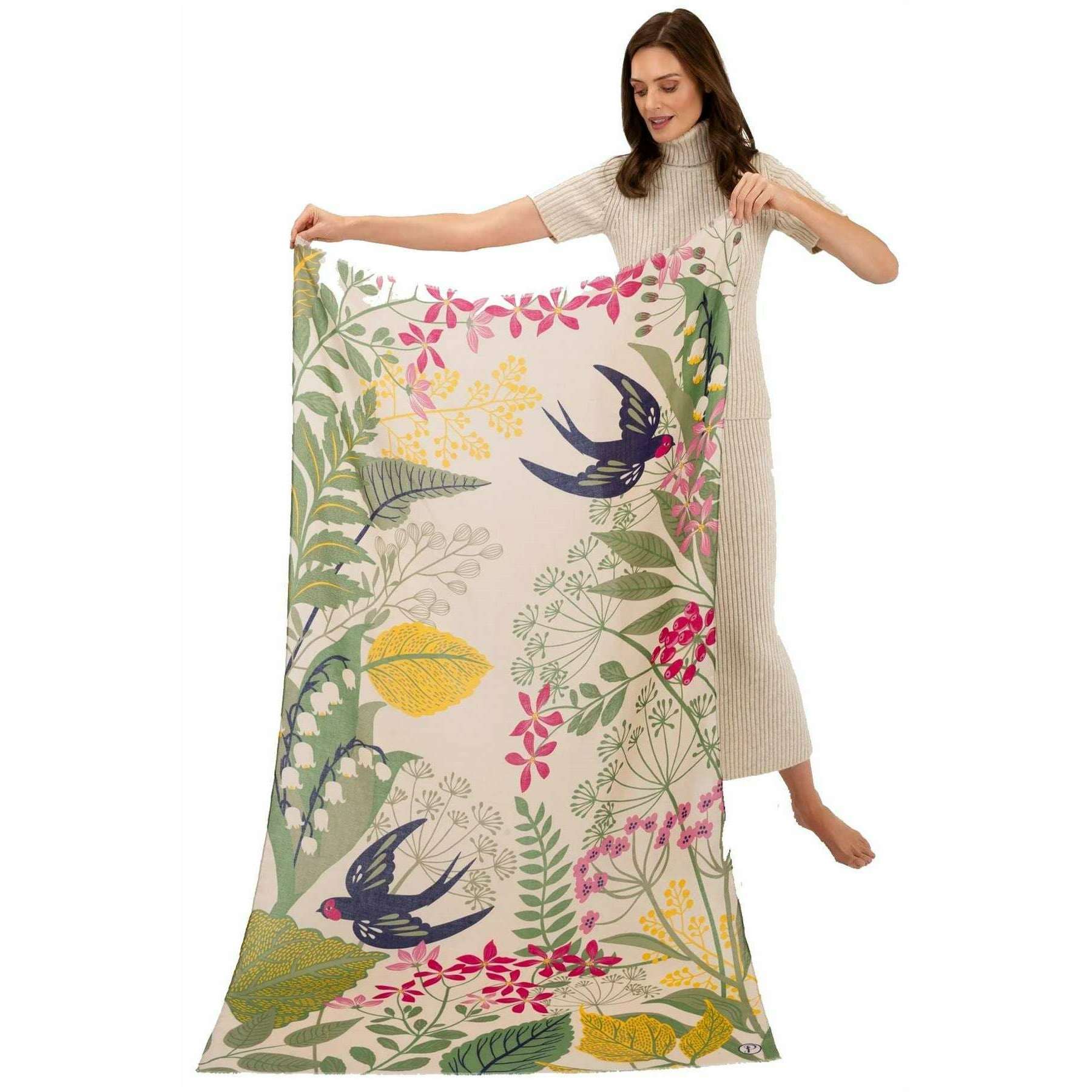 Bufanda de impresión de polvo Swooping Swallows - Crema