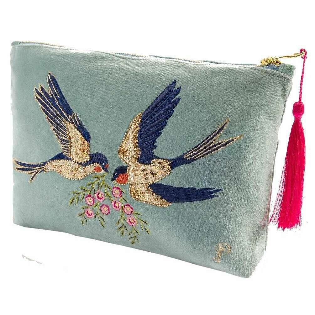 Polvo Swooping Swallows Velvet Zip Bouch - Azul de hielo