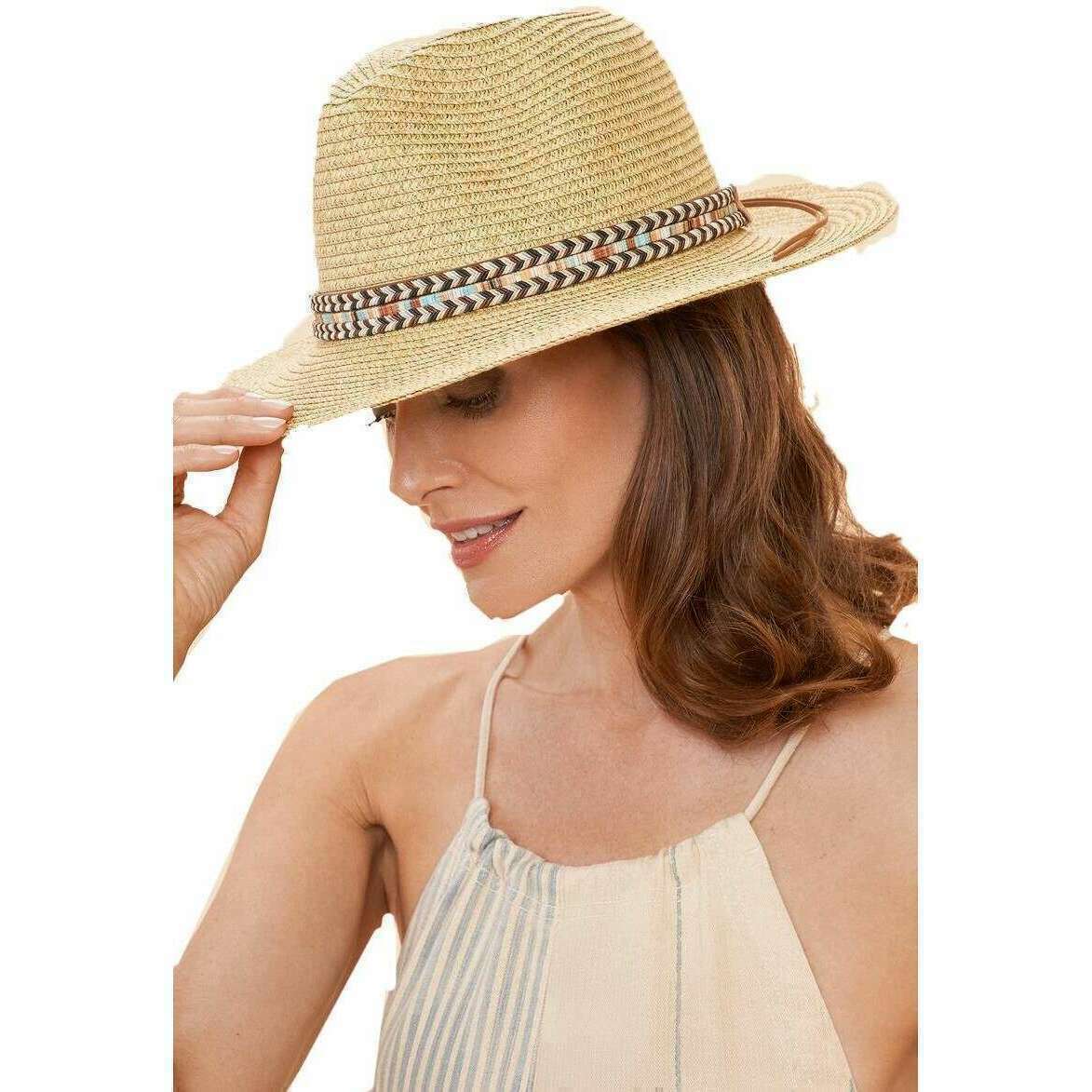 Fabricado a partir del 100% de papel es este sombrero de thalia para mujeres de vainilla beige del diseñador en polvo. Mide 12 cm (altura) x 35 cm (ancho) x 12 cm (profundidad). Todos los sombreros vienen completos con envases de polvo. El sombrero de Thalia en polvo - Vanilla Beige te hace sentir elegante. La banda de Chevron te ofrece un buen toque de color para agregar a tus atuendos que te brindan ese estilo encantador. Perfecto para el verano.