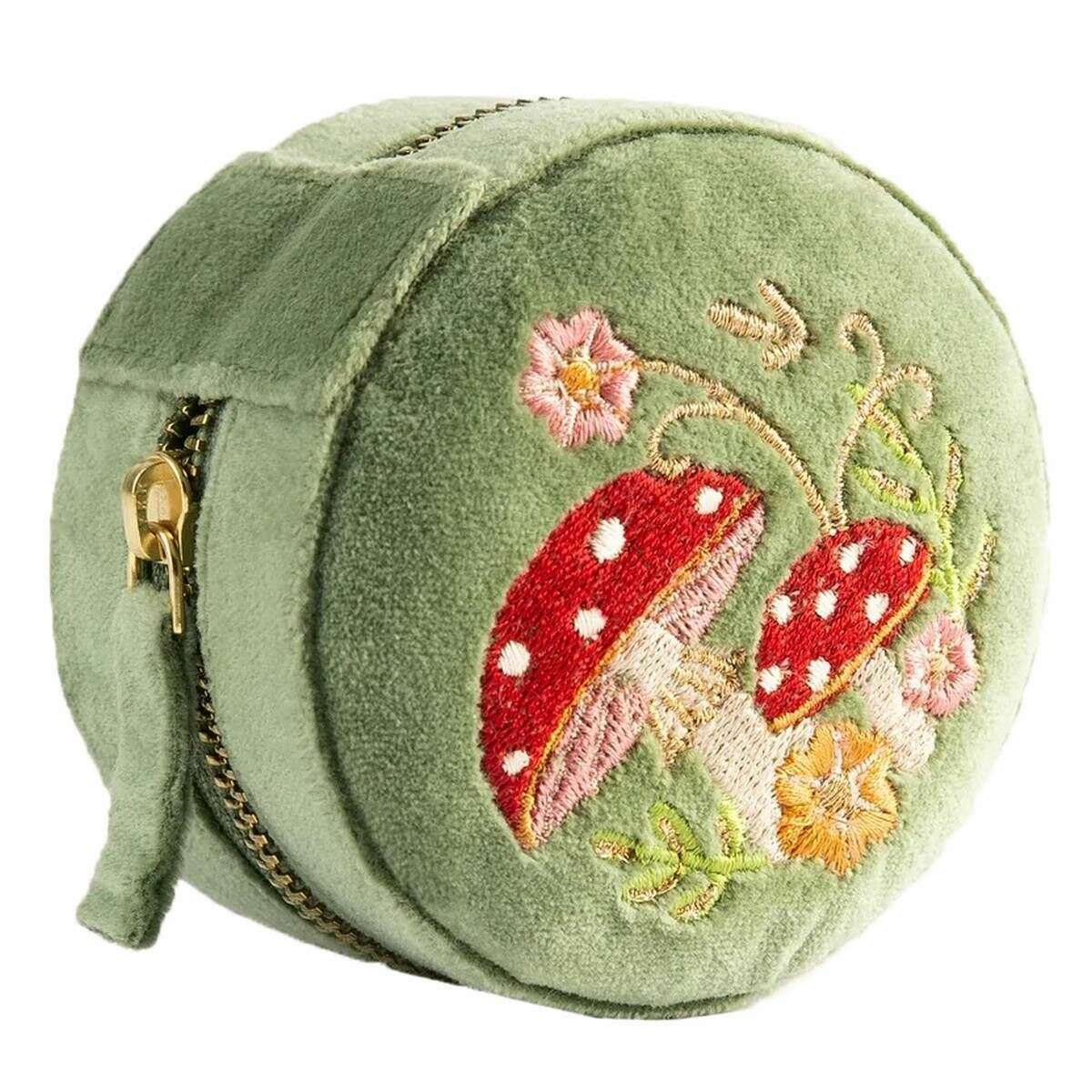 Este joyero de terciopelo redondo de Toadstools de mujer por la marca en polvo está hecho de terciopelo de poliéster al 100% y se exhibe en verde. Mide 4,5 cm (altura) x 8 cm (ancho). Todas las joyas vienen completas con etiquetas de polvo. El cuadro de joyería de terciopelo redondo de Toadstools en polvo: Sage Green es un caso impresionante que mantendrá sus joyas organizadas de la manera más dulce y elegante. Con una sección de soporte de anillo, dos mini bandejas separadas y un bolsillo de banda elástica para una bodega segura. Perfecto para viajar, para una fiesta de pijamas, al gimnasio o simplemente para almacenar de forma segura sus piezas favoritas. Este hermoso diseño redondo crea un gran tamaño para encajar en cualquier bolsa de su elección cuando está en movimiento. El exterior bordado agrega un aspecto lindo y elegante, mientras que la cremallera dorada agrega el toque final.