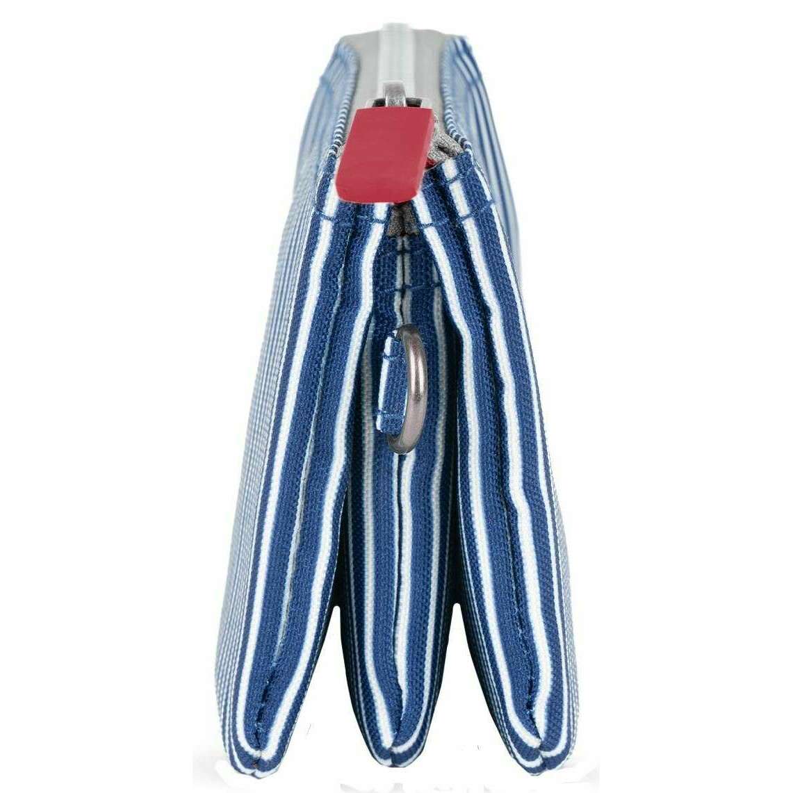 Esta pequeña nogal de carnaby unisex con billetera de lona reciclada roja de la marca Roka está hecha de lienzo reciclado 100% resistente al clima y se exhibe en azul. Mide 14 cm (altura) x 9.5 cm (ancho) x 2.8 cm (profundidad). Todas las billeteras vienen completas con empaque Roka. La pequeña nogal roka Carnaby con billetera de lona reciclada roja: rojo/azul/blanco muestra un diseño rayado clásico con un toque de rojo para agregar un poco de brillo a sus días. Esta billetera es ecológica debido al material de lona reciclado que también es resistente al agua y está diseñada para sostener sus tarjetas, monedas y notas sin temor al daño. Tiene tres secciones para una gran organización que está conectada por una cremallera principal para una fijación segura.
