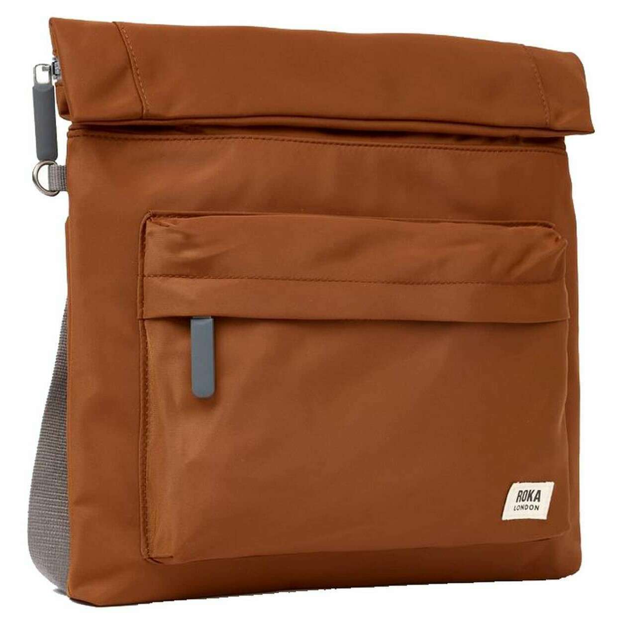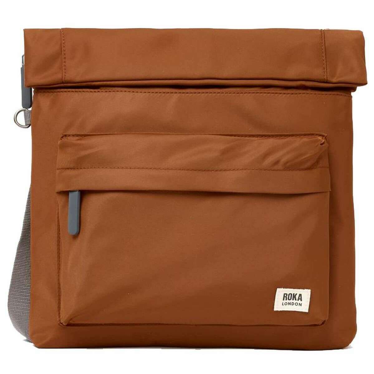 Bolso bandolera Roka Stratford B grande de nailon reciclado - Marrón salvado