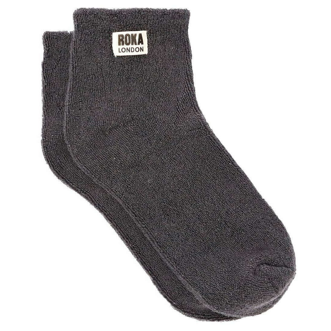 La diseñadora Roka te trae estos calcetines de mujer 82% algodón orgánico, 10% nailon y 2% elastano en tonos negros desteñidos. Además, los calcetines negros descoloridos están diseñados con un patrón liso. Todos los calcetines vienen completos con un empaque roka. Los calcetines Roka Watford - Faded Black son los calcetines perfectos para el uso diario. La mezcla de algodón orgánico y esponjoso garantiza que tus pies se mantengan cómodos y cómodos durante todo el día, mientras que el hermoso color negro te mantiene con un aspecto elegante y moderno. Estos calcetines vienen con un logo de Roka cosido en el costado, lo que les da ese estilo básico.