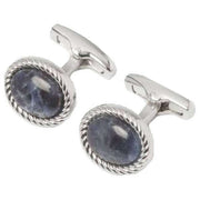 Estos gemelos charles de sodalita para hombre están hechos de metal con baño de rodio y sodalita, se presentan en color plateado y son de la marca Simon Carter. Todos los gemelos vienen completos con el embalaje de Simon Carter. Los gemelos Simon Carter Charles Sodalite - Azul/Plata presentan un elegante diseño de borde de cuerda que rodea una piedra sodalita única. ¡Este juego de gemelos es el toque final perfecto para cualquier ocasión formal y es un gran regalo para todos los caballeros!