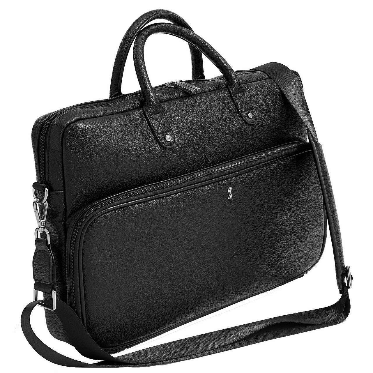Perfecto para las mujeres es este bolso negro para computadora portátil Stackers de 16 pulgadas, que también está hecho de piel sintética. Mide 37 cm (alto) x 9 cm (ancho) x 43 cm (profundidad). Todas las bolsas se entregan completas con embalaje apilador. ¡La bolsa para computadora portátil Stackers de 16 pulgadas - Negra es imprescindible cuando estás en movimiento! Este elegante bolso negro para computadora portátil cuenta con espacio para artículos de papelería, múltiples bolsillos y un gran bolsillo trasero externo. Perfecto para el uso diario con su correa cruzada.