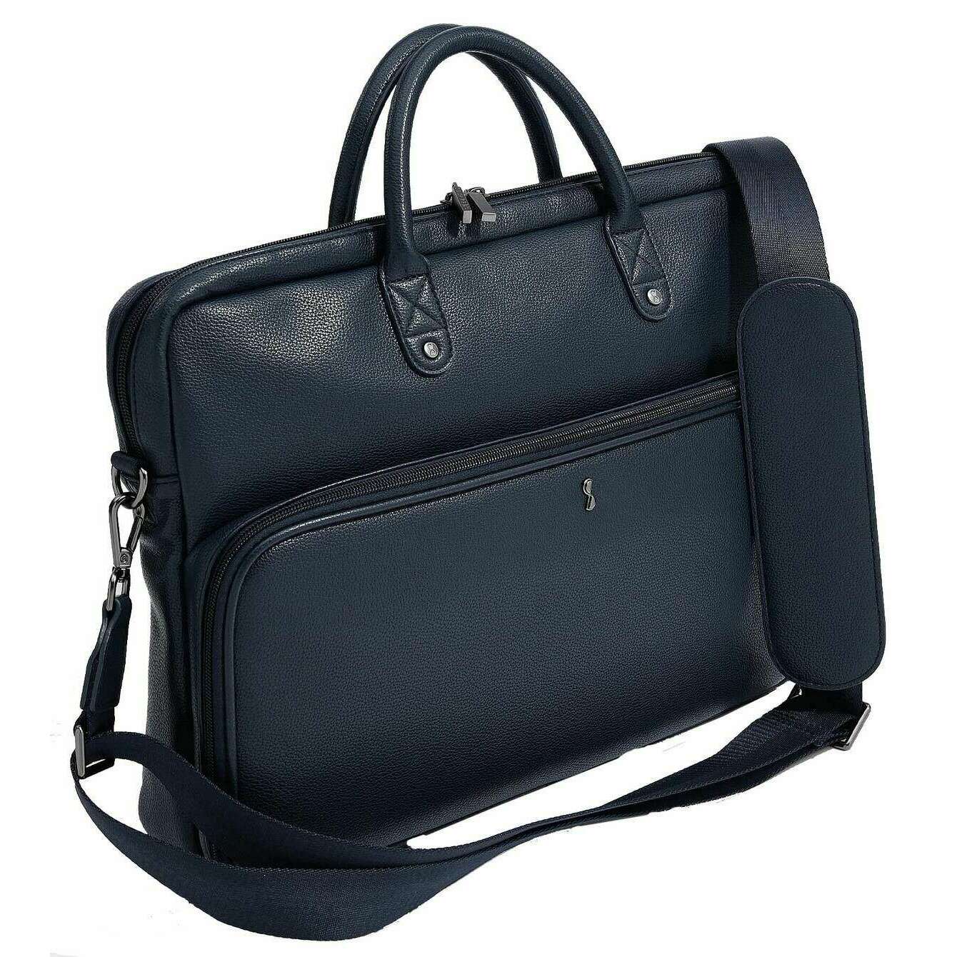 Fabricado en piel sintética, este bolso para portátil de 16 pulgadas para mujer en color azul marino del diseñador Stackers. Mide 37 cm (alto) x 9 cm (ancho) x 43 cm (profundidad). Todas las bolsas se entregan completas con embalaje apilador. ¡La bolsa para computadora portátil Stackers de 16 pulgadas - Azul marino es imprescindible cuando estás en movimiento! Este elegante bolso azul para computadora portátil cuenta con espacio para artículos de papelería, múltiples bolsillos y un gran bolsillo trasero externo. Perfecto para el uso diario con su correa cruzada.