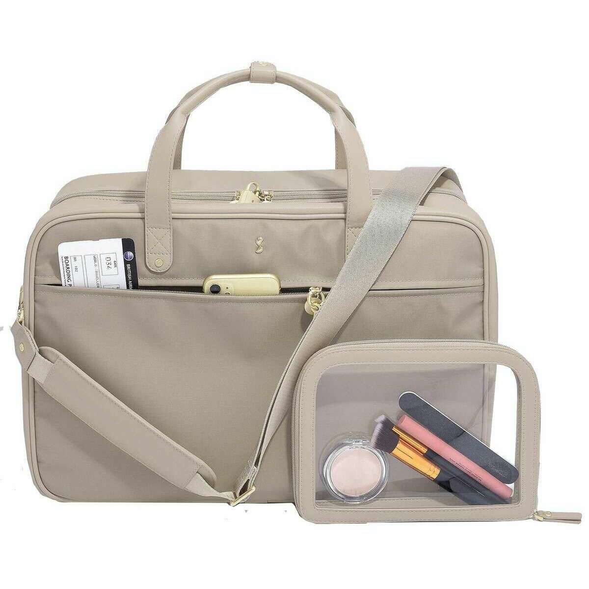 Con piel sintética y terciopelo beige, este bolso de mano de Stackers es perfecto para las mujeres y es imprescindible. Mide 33,5 cm (alto) x 22,5 cm (ancho) x 46 cm (profundidad). Todas las bolsas se entregan completas con embalaje apilador. El bolso de cabina Stackers - Clay Beige es perfecto para usarlo mientras viaja. Este bolso de cabina beige cuenta con un bolsillo para el portátil, dos compartimentos grandes con cremallera y una variedad de bolsillos más pequeños. Completo con correas para los hombros, correas para la mochila y una cremallera para mayor seguridad.