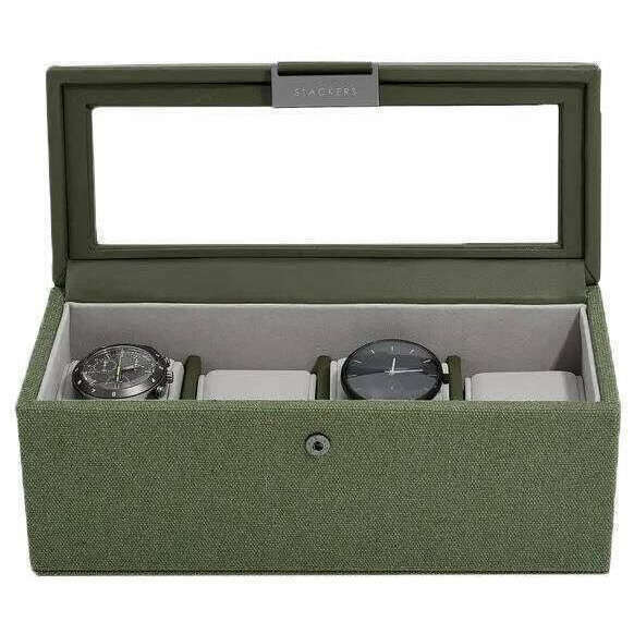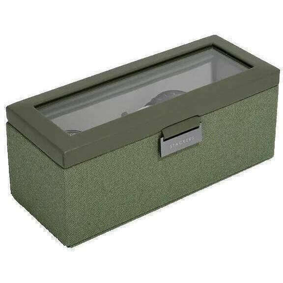 Caja de reloj de 4 piezas de lienzo de apiladores - verde
