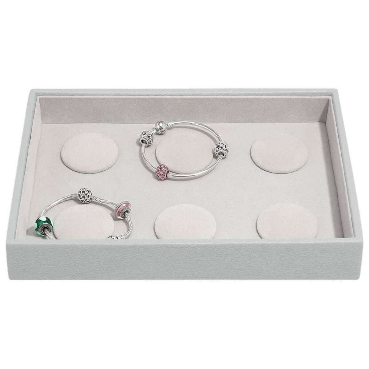 El diseñador Stackers te ha traído este joyero de piel sintética y terciopelo para mujer en tonos gris guijarro. Mide 3,7 cm (alto) x 25 cm (ancho) x 18 cm (profundidad). Se recomienda limpiar con un paño para mantener este joyero en buenas condiciones. Todos los joyeros se entregan completos con embalaje apilador. La capa de pulsera Stackers Classic 6 - Pebble Grey tiene capacidad para 6 pulseras con un centro acolchado para cada una para que no se enrede. Forrado con un hermoso terciopelo para mantener sus joyas en perfectas condiciones, puede usarse solo en su cómoda o combinarse con otras piezas para construir un joyero más grande, personalizado para usted.