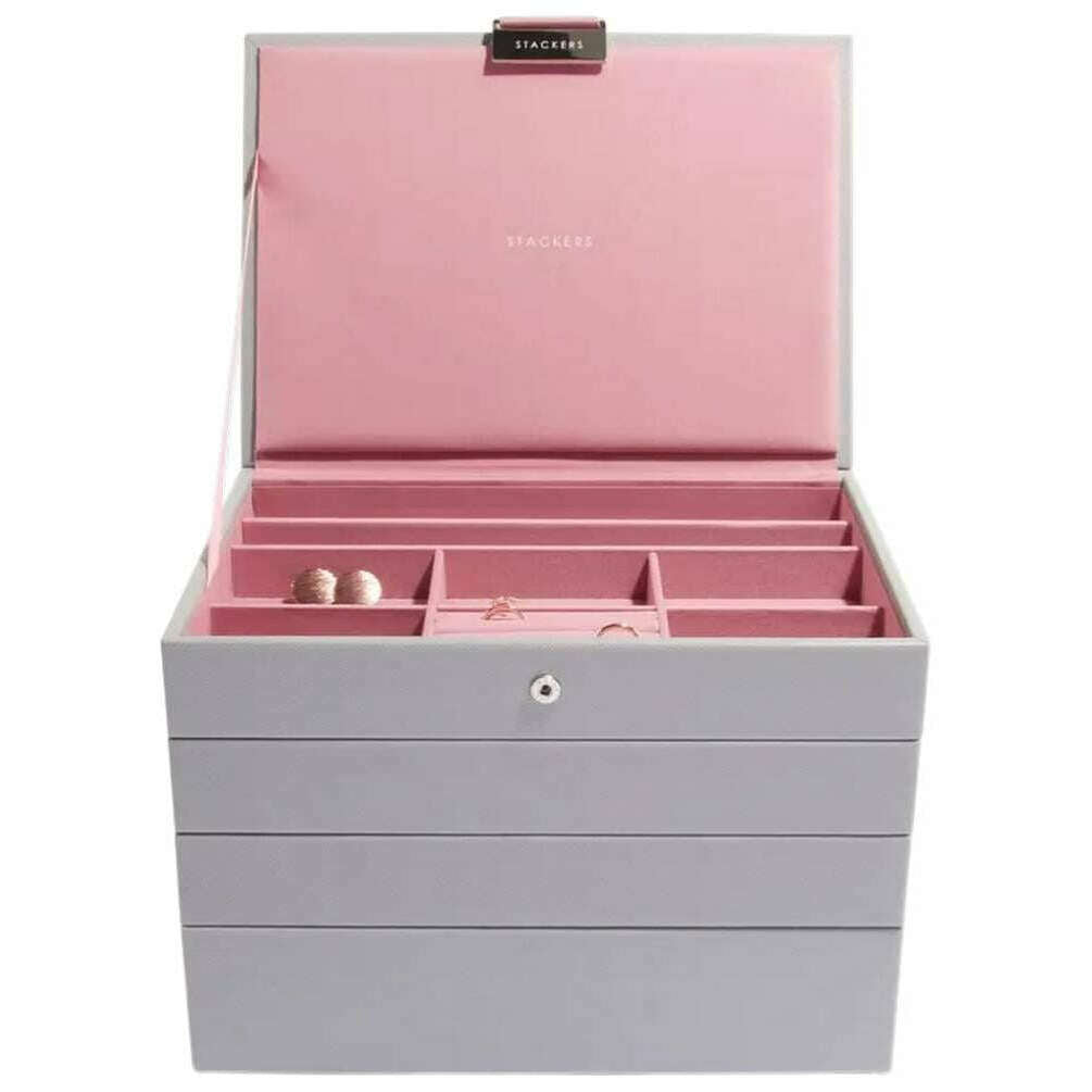 Juego de 4 joyeros Stackers Classic - Gris paloma/Rosa