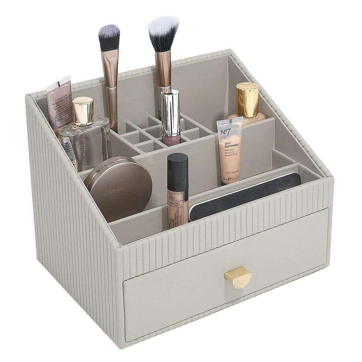 Presentado por la marca Stackers, este clásico organizador de maquillaje para mujer de color gris caliza está hecho de piel sintética y PVC. Mide 19 cm (alto) x 25 cm (ancho) x 18 cm (profundidad). Todos los organizadores de maquillaje vienen completos con embalaje apilador. El organizador de maquillaje Stackers Classic - Limestone Grey cuenta con múltiples compartimentos para su maquillaje o productos para el cuidado de la piel. Este hermoso organizador de maquillaje gris acanalado tiene un cajón para productos más grandes, ¡perfecto para mantenerte organizado y ahorrar espacio!
