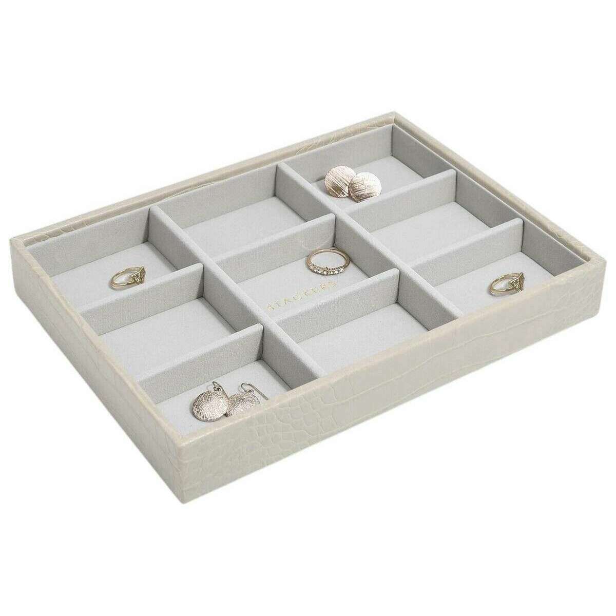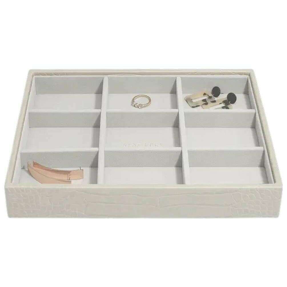 Esta capa clásica y llamativa para mujer está diseñada por la marca Stackers en color gris y está confeccionada en piel sintética y terciopelo. Mide 3,7 cm (alto) x 25 cm (ancho) x 18 cm (profundidad). Se recomienda limpiar con un paño para mantener este joyero en buenas condiciones. Todos los joyeros se entregan completos con embalaje apilador. La capa Stackers Classic Statement - Putty Grey ha sido ingeniosamente creada y diseñada para sujetar perfectamente todos tus aretes, anillos o clips para el cabello. Se puede añadir a cualquier otra bandeja de joyería clásica para crear un joyero o se puede utilizar sola. No tendrás que hacer concesiones en materia de organización.