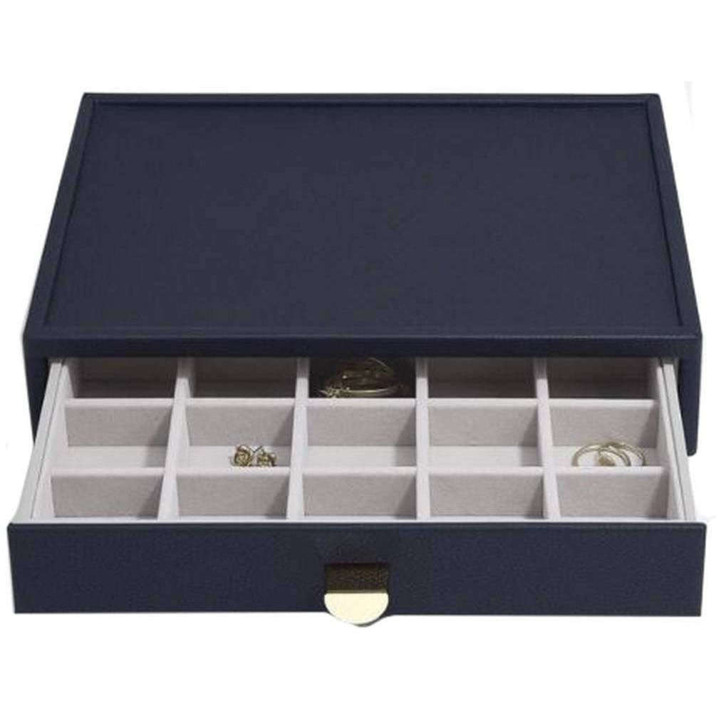 El cajón de la baratija clásica de los apiladores: Pebble Navy está hecho de cuero sintético y terciopelo. El joyero de Pebble Navy se completa en el embalaje de apiladores. La caja de joyas de cuero para mujeres es excelente regalos. Compre el cajón de baratijas clásico de los apiladores - Pebble Navy ahora.