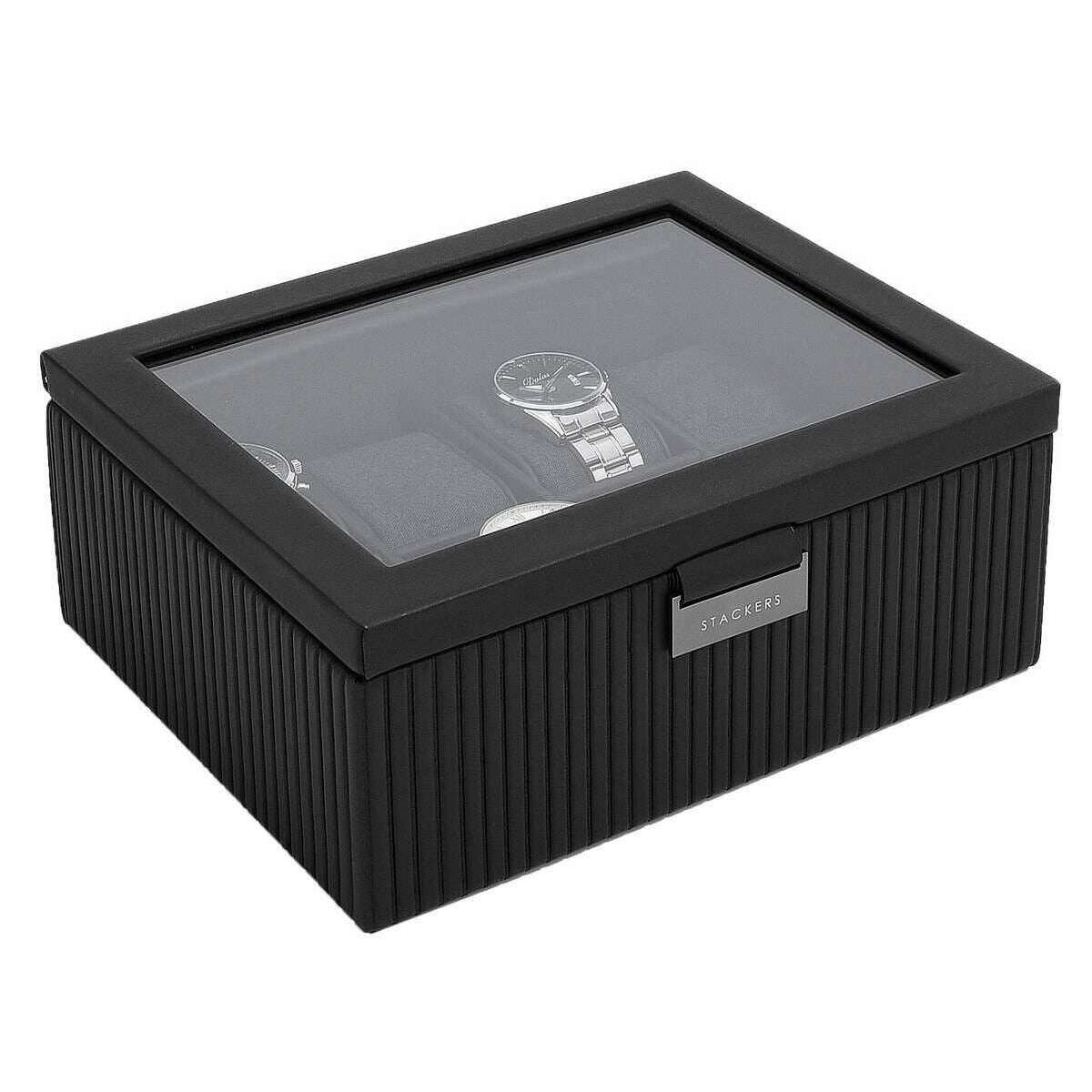 Caja para relojes Stackers Fluted de 8 piezas - Negro