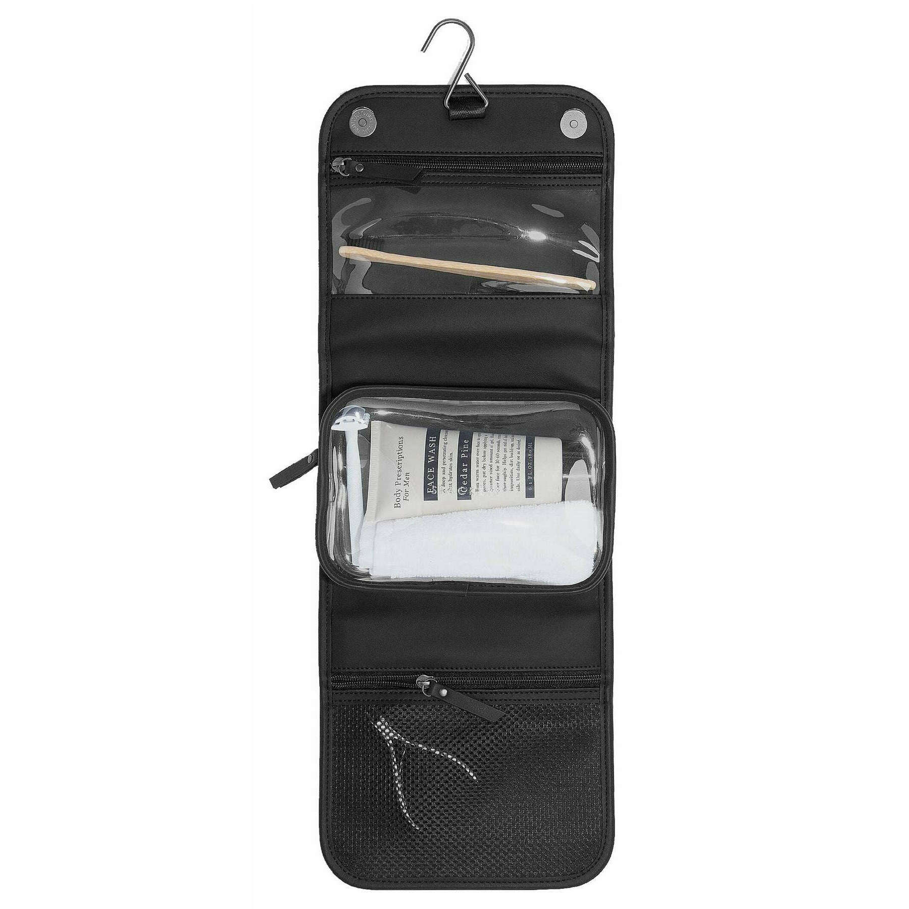 • 2 compartimentos internos con cremallera , Neceser transparente extraíble , Gancho para colgar
