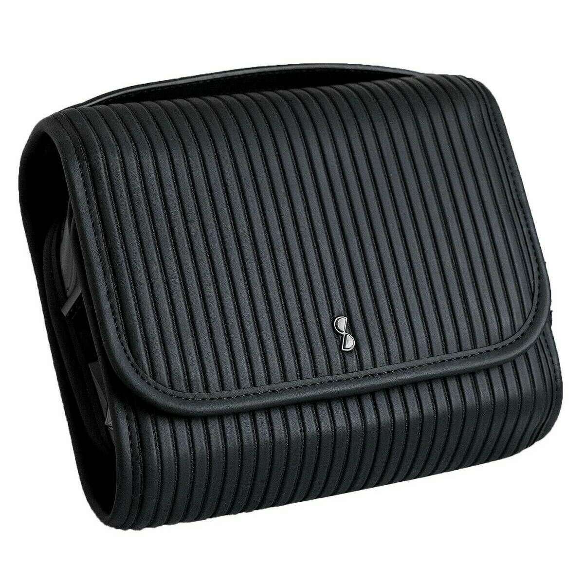 Este pequeño neceser colgante acanalado para mujer está diseñado por la marca Stackers en color negro y está confeccionado en piel sintética. Mide 15,5 cm (alto) x 20,5 cm (ancho) x 8,5 cm (profundidad). Todas las bolsas se entregan completas con embalaje apilador. ¡El neceser colgante pequeño Stackers Fluted - Negro es imprescindible cuando estás en movimiento! Este pequeño neceser colgante negro acanalado cuenta con tres compartimentos principales, uno de los cuales es un neceser extraíble. Perfecto para escapadas de fin de semana con su práctico gancho para colgar.