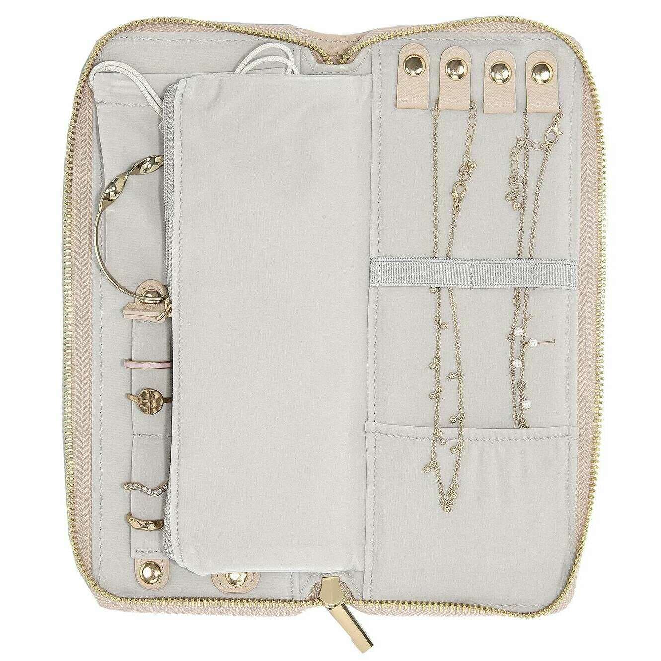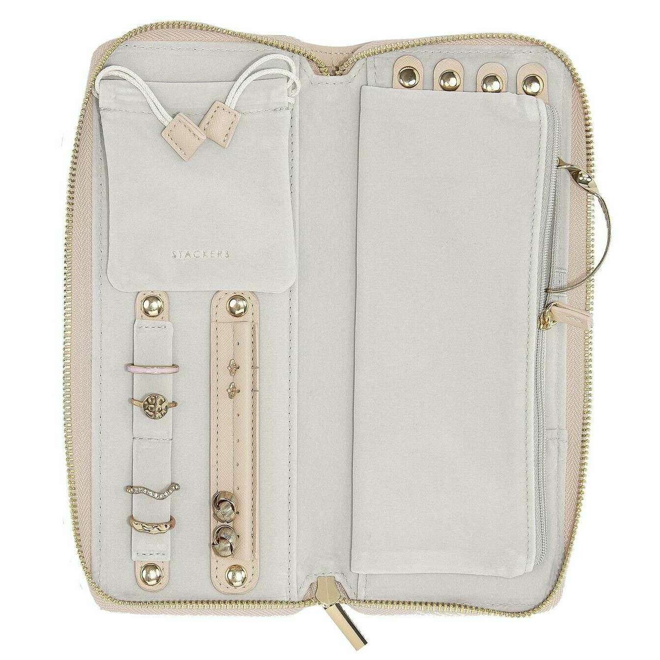Presentado por la marca Stackers, este rollo de joyería para mujer de color rosa tejido está hecho de piel sintética. Mide 3 cm (alto) x 24,5 cm (ancho) x 10,3 cm (profundidad). Todos los joyeros se entregan completos con embalaje apilador. ¡El rollo de joyería Stackers - Blush Woven Pink es imprescindible cuando estás de viaje! Este rollo de joyería rosa es perfecto para viajar con joyas e incluye un cierre de cremallera para mayor seguridad.