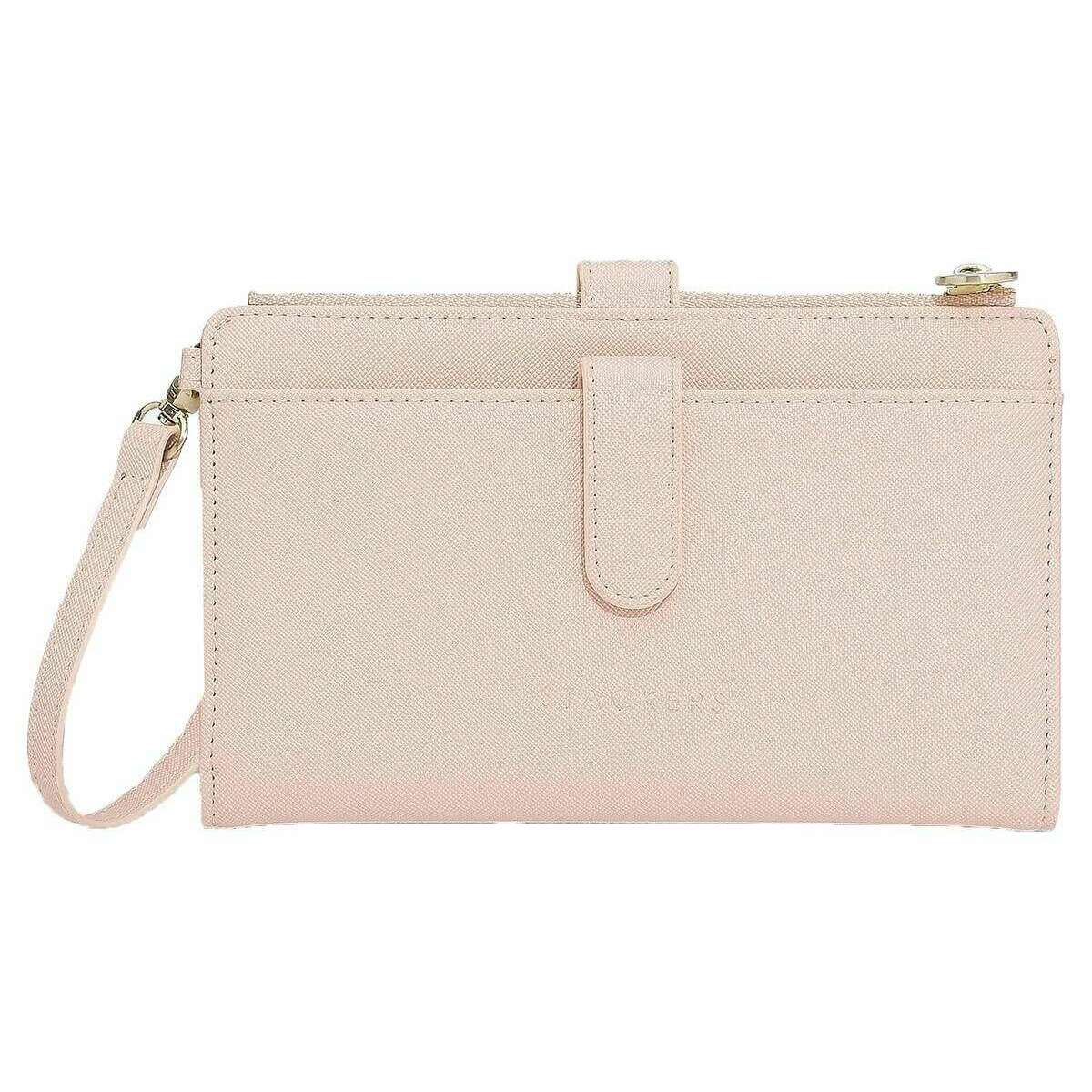 Este bolso grande para mujer está diseñado por la marca Stackers en color rosa y está confeccionado en piel sintética. Mide 12,5 cm (alto) x 19,5 cm (ancho) x 3 cm (profundidad). Todos los bolsos vienen completos con embalaje apilador. ¡El bolso grande Stackers - Rosa rubor/dorado es imprescindible cuando estás de viaje! Este clásico y moderno bolso rosa y dorado cuenta con múltiples bolsillos para dinero y tarjetas, un tarjetero extraíble y un espejo cosmético. Viene completo con una correa para la muñeca extraíble y un bolsillo externo para el teléfono. ¡Perfecto para cualquier salida!
