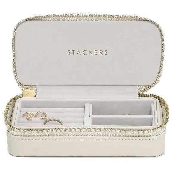 Usando cuero y lino de Faux Beige, este cuadro de viaje con cremallera mediana por apiladores es perfecto para las mujeres y imprescindible. Mide 4.5 cm (altura) x 15.5 cm (ancho) x 7cm (profundidad). Todas las joyas se completan en el embalaje de apiladores. El cuadro de viaje con cremallera mediana de los apiladores: la avena/beige de lino es un viaje ideal esencial para mantener sus joyas seguras en un solo lugar. Garantizado de no decepcionar, esto seguramente impresionará con su pequeño tamaño e interior suave con una sección de anillo o arete de pernos, y dos secciones más grandes. Haga que esto sea imprescindible para cualquier mujer elegante que viaja con joyas.