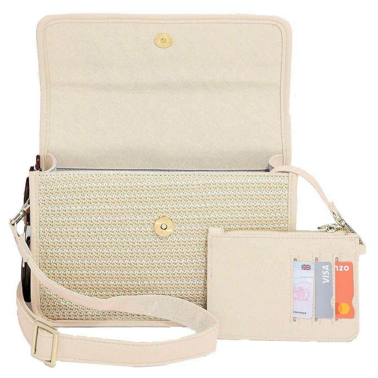 Este bolso bandolera de rafia para mujer está confeccionado por la marca Stackers en color rosa y está confeccionado en efecto rafia y piel sintética. Mide 17 cm (alto) x 7,5 cm (ancho) x 25 cm (profundidad). Todas las bolsas se entregan completas con embalaje apilador. ¡El bolso cruzado Stackers Raffia - Blush Pink Raffia es imprescindible cuando estás de viaje! Este exclusivo y moderno bolso bandolera de rafia rosa cuenta con múltiples bolsillos, un espejo cosmético Stackers y un tarjetero extraíble. Perfecto para el uso diario con su correa cruzada ajustable y extraíble.