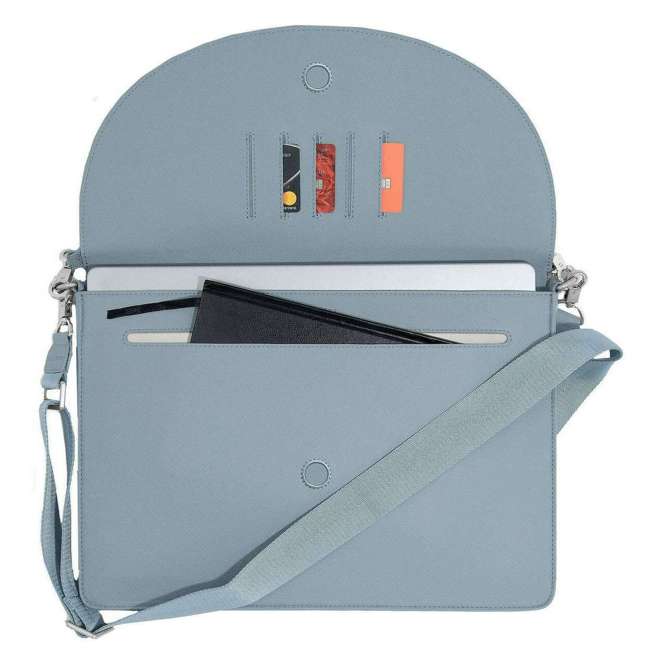 Con piel sintética azul, este delgado bolso para computadora portátil de Stackers es perfecto para las mujeres y es imprescindible. Mide 4,2 cm (alto) x 37,6 cm (ancho) x 26,5 cm (profundidad). Todas las bolsas se entregan completas con embalaje apilador. ¡La bolsa para computadora portátil Stackers Slim - Dusky Blue es imprescindible cuando estás en movimiento! Este elegante bolso azul para computadora portátil cuenta con espacio para computadora portátil, ranuras para tarjetas y una funda acolchada para su computadora portátil. Perfecto para el uso diario con su asa extraíble y su correa cruzada.