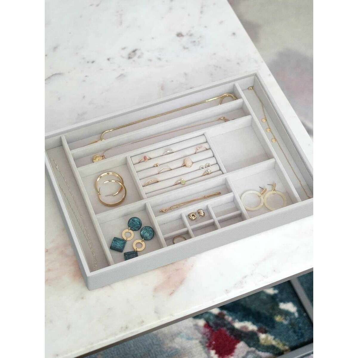 Con piel sintética gris y terciopelo, esta capa de accesorios para anillos de gran tamaño de Stackers es perfecta para las mujeres y es imprescindible. Mide 4 cm (alto) x 36 cm (ancho) x 23,9 cm (profundidad). Se recomienda limpiar con un paño para mantener este joyero en buenas condiciones. Todos los joyeros se entregan completos con embalaje apilador. La capa de accesorios para anillos Stackers Supersize - Pebble Grey le ofrece la opción de apilarla con otras capas de gran tamaño de la colección Stackers para crear su propio joyero personalizado adecuado a sus necesidades. Alternativamente, puede usarse solo para organizar sus anillos, pulseras y otros pequeños accesorios. Elaborada por expertos con materiales de alta calidad, esta hermosa capa sería perfecta para quienes aman usar accesorios.