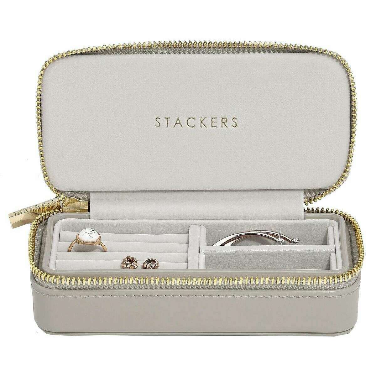 Joyero de viaje con cremallera Stackers - Patent Putty Grey