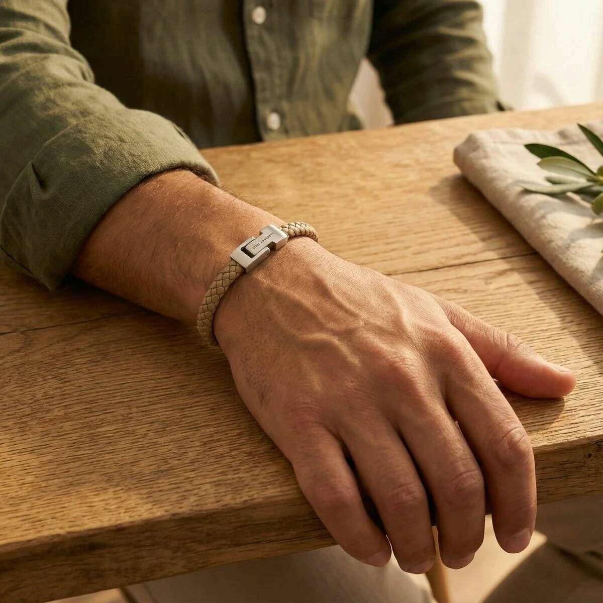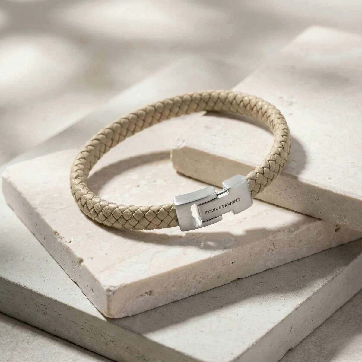 Fabricada en 100 % piel de napa y acero inoxidable, esta pulsera de cuero trenzado archie para hombre color crema crudo del diseñador Steel & Barnett. Todas las pulseras vienen completas con embalaje de acero y Barnett. La pulsera de cuero trenzado Archie de Steel & Barnett - Crema crudo encarna el equilibrio perfecto entre simplicidad y elegancia. Elaborada a mano por expertos con piel de napa auténtica, su suave correa de 8 mm ofrece una estética limpia y minimalista adecuada para cualquier estilo. El diseño se realza con un exclusivo cierre de plata cepillada, finamente grabado con el logotipo de STEEL & BARNETT, que ofrece un sutil toque de distinción. Diseñado para durar, el brazalete cuenta con un cierre de acero inoxidable 316L de alta calidad, famoso por su durabilidad y resistencia a la corrosión. Su cierre magnético garantiza un uso sin esfuerzo, proporcionando un ajuste seguro y cómodo durante todo el día. Versátil y refinado, Archie pasa sin problemas de ocasiones formales a ambientes informales, añadiendo una capa de sofisticación discreta a cada conjunto.