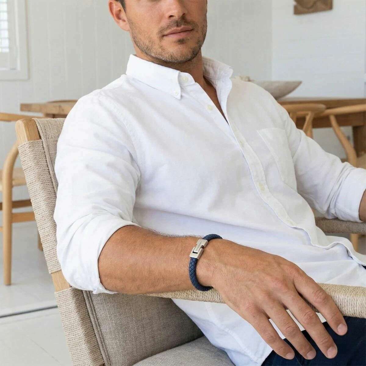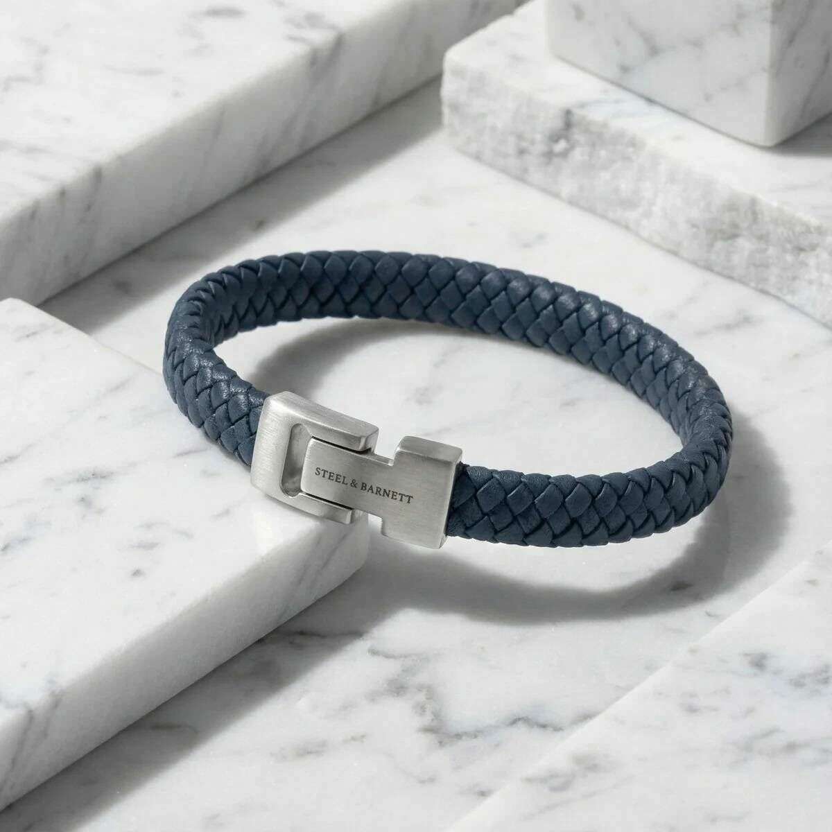 Esta pulsera de cuero trenzado archie para hombre ha sido confeccionada 100% en cuero napa y acero inoxidable, se presenta en color azul y es de la marca Steel & Barnett. Todas las pulseras vienen completas con embalaje de acero y Barnett. La pulsera de cuero trenzado Archie de Steel & Barnett - Azul jeans encarna el equilibrio perfecto entre simplicidad y elegancia. Elaborada a mano por expertos con piel de napa auténtica, su suave correa de 8 mm ofrece una estética limpia y minimalista adecuada para cualquier estilo. El diseño se realza con un exclusivo cierre de plata cepillada, finamente grabado con el logotipo de STEEL & BARNETT, que ofrece un sutil toque de distinción. Diseñado para durar, el brazalete cuenta con un cierre de acero inoxidable 316L de alta calidad, famoso por su durabilidad y resistencia a la corrosión. Su cierre magnético garantiza un uso sin esfuerzo, proporcionando un ajuste seguro y cómodo durante todo el día. Versátil y refinado, Archie pasa sin problemas de ocasiones formales a ambientes informales, añadiendo una capa de sofisticación discreta a cada conjunto.