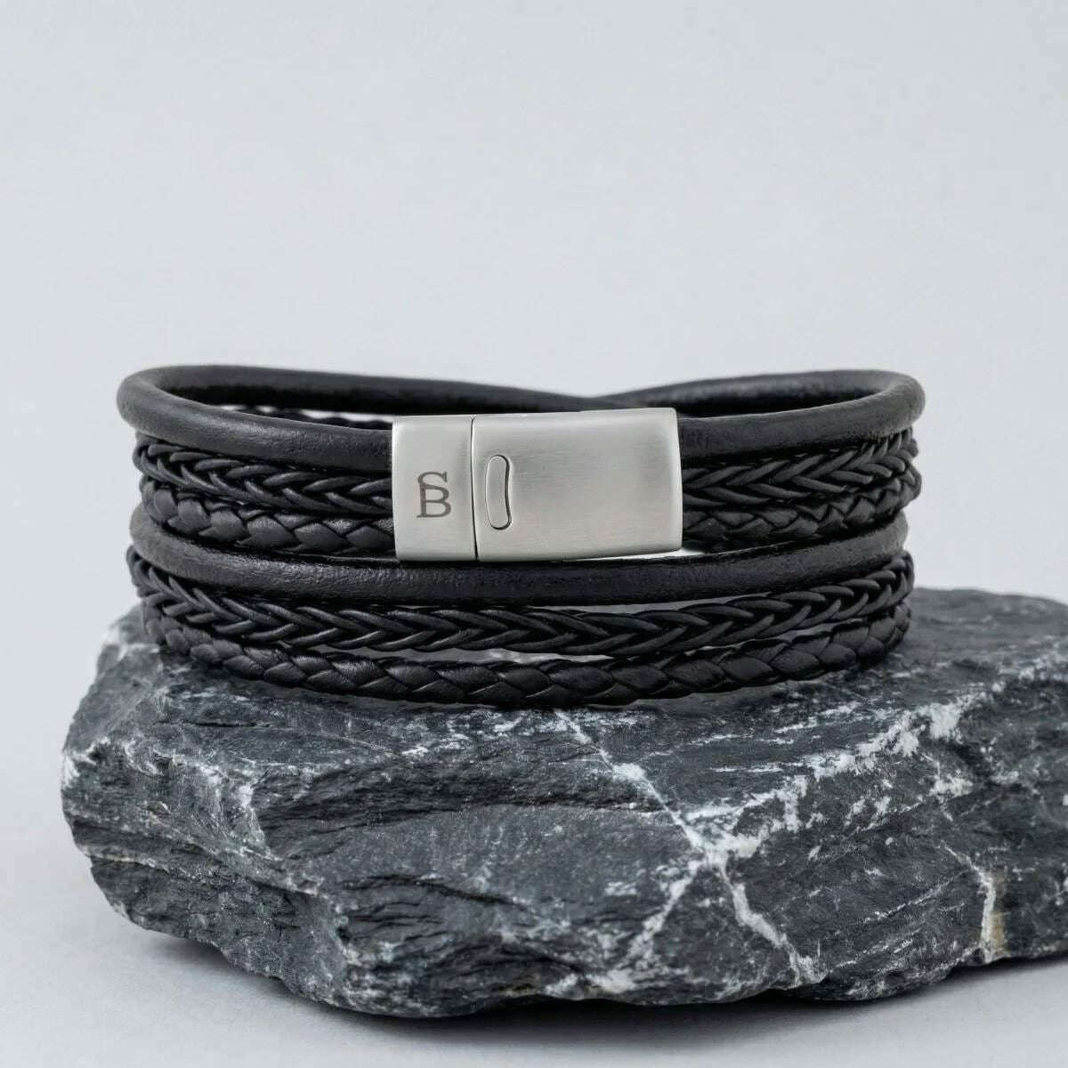 Brazalete de cuero multihilo en capas Bonacci de Steel & Barnett - Negro
