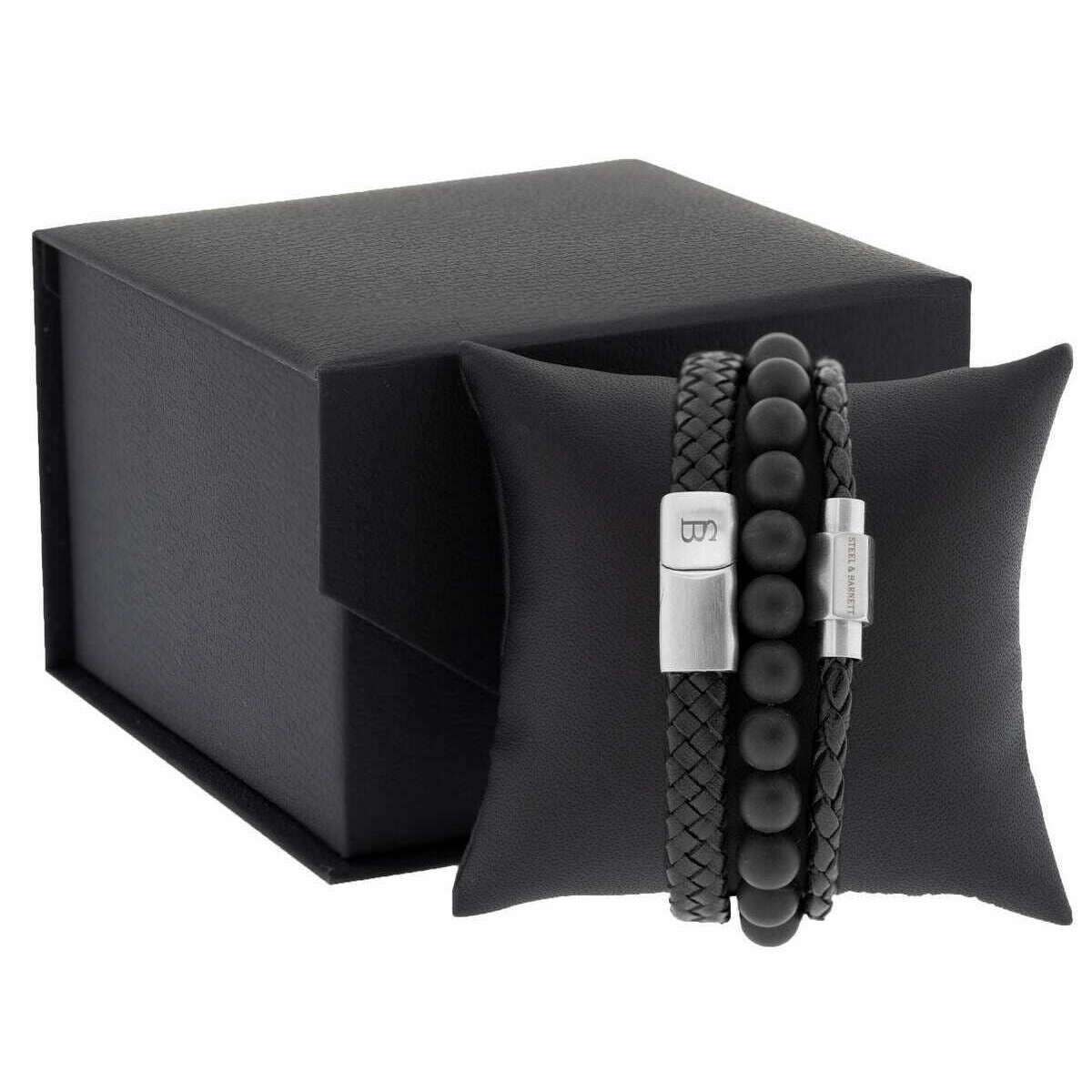 Set de regalo con pulsera triple Steel & Barnett - Negro/Plata