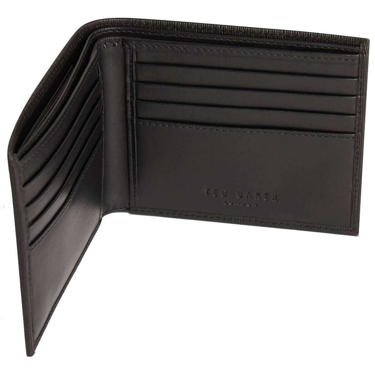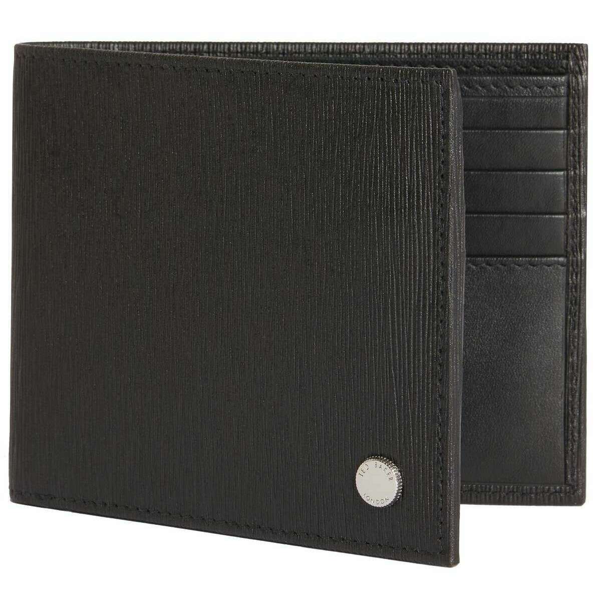 Esta cartera de hombre de piel con textura de corteza de barrick ha sido confeccionada 100% en piel vacuno, se presenta en color negro y es de la marca Ted Baker. Mide 9 cm (alto) x 10 cm (ancho). Todas las carteras vienen completas en una caja de regalo de Ted Baker. La cartera de cuero con textura de corteza Barrick de Ted Baker - Negra presenta una impresionante textura similar a la corteza para darle un acabado elegante y único. En su interior encontrarás un compartimento doble para billetes y 8 ranuras para tarjetas, perfecto para el día a día. La marca en relieve y los herrajes grabados completan esta billetera con estilo, lo que la convierte en una pieza esencial que buscará en cada ocasión.