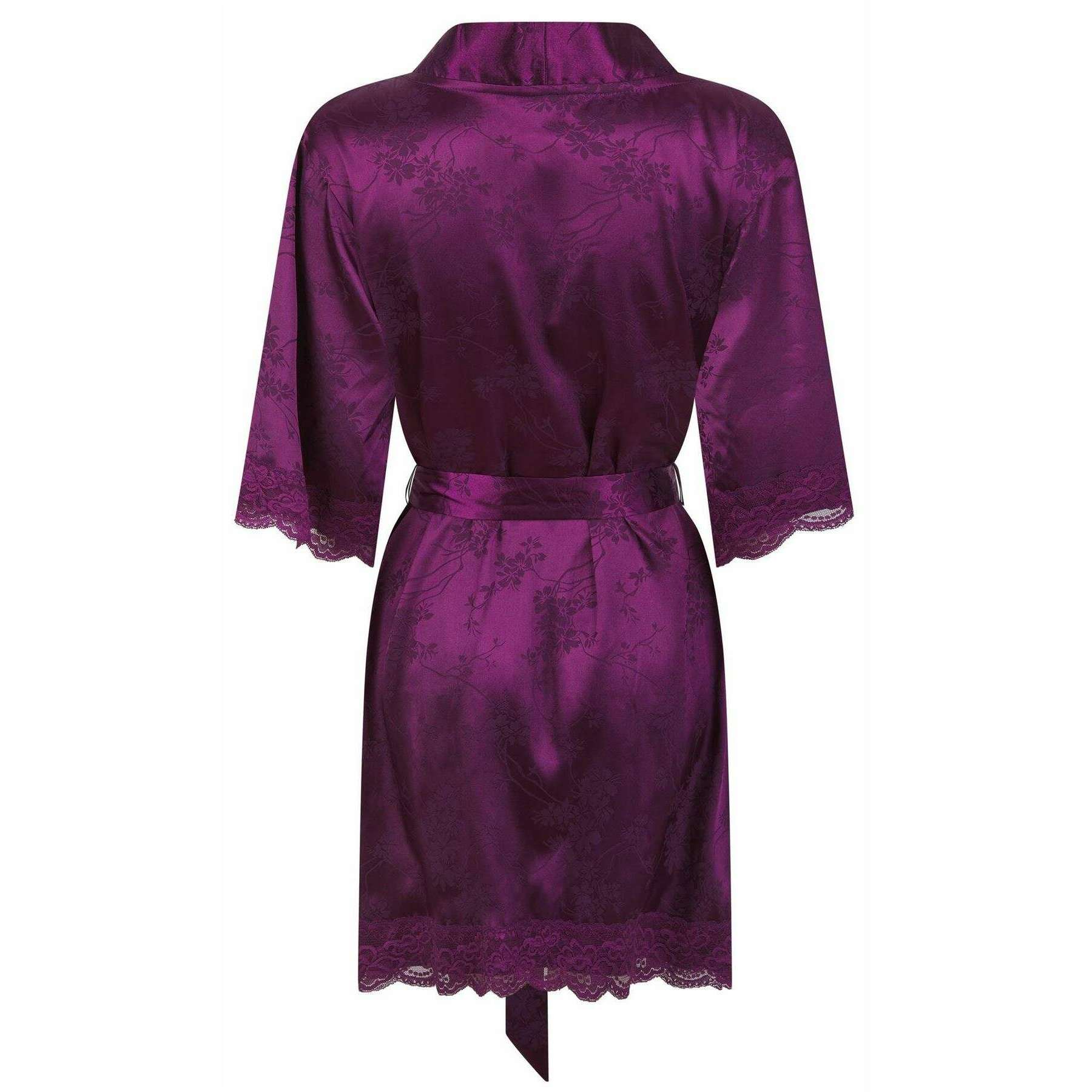 Esta bata kimono clara para mujer está confeccionada por la marca Ted Baker en color violeta y está confeccionada en 97% poliéster y 3% spandex. Además, la bata de color morado oscuro está diseñada con un patrón liso. Todas las batas vienen completas con un empaque de Ted Baker. La bata tipo kimono Clara de Ted Baker - Morado oscuro, lujosa y sofisticada, se convertirá en una gran incorporación a cualquier colección de ropa de estar por casa para mujer. Con un aspecto sedoso con un diseño floral por todas partes, una manga de 3/4, encaje en las mangas y la parte inferior y un cinturón se combinan para crear un atractivo elegante. El tejido suave y transpirable te mantiene abrigado y al mismo tiempo fresco cuando descansas en casa. Acabado con una etiqueta decorativa de metal de Ted Baker.