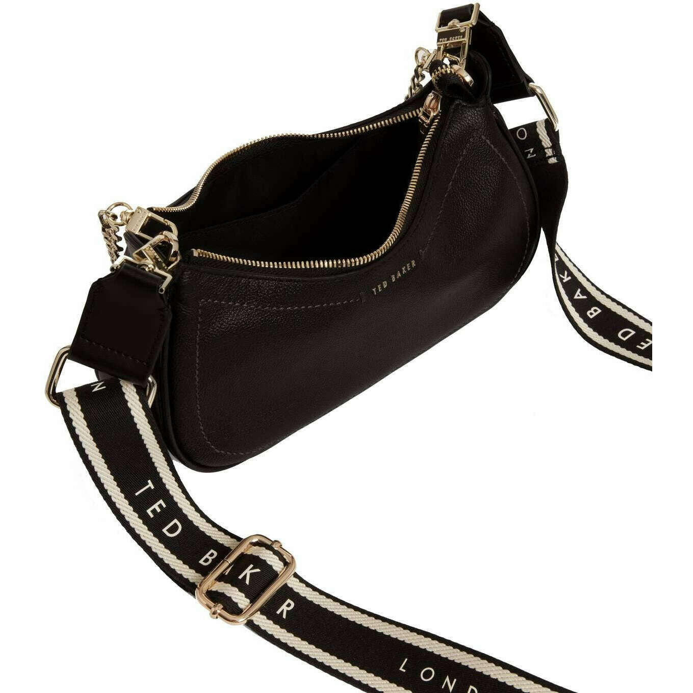 Perfecto para mujer es este bolso bandolera pequeño de piel laarna negro de Ted Baker, además está confeccionado 100% en piel bovina. Mide 15 cm (alto) x 25 cm (ancho) x 6,5 cm (profundidad). Todas las bolsas vienen completas con embalaje de Ted Baker. El bolso de hombro pequeño de cuero Laarna de Ted Baker - Negro garantiza que esté equipado con un compañero elegante. La correa de varios tonos se puede ajustar para que quede cruzada o sobre el hombro, lo que facilita su transporte. Dentro de una sección principal de buen tamaño con bolsillos internos con cremallera para artículos más valiosos. También tiene una correa de cadena para un uso más formal, lo que hace que esta pieza sea ideal para todas las ocasiones.