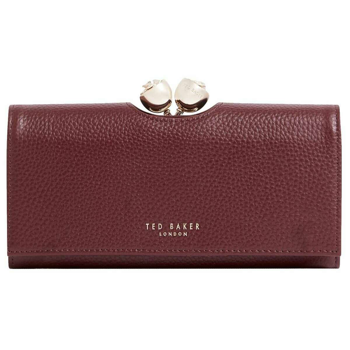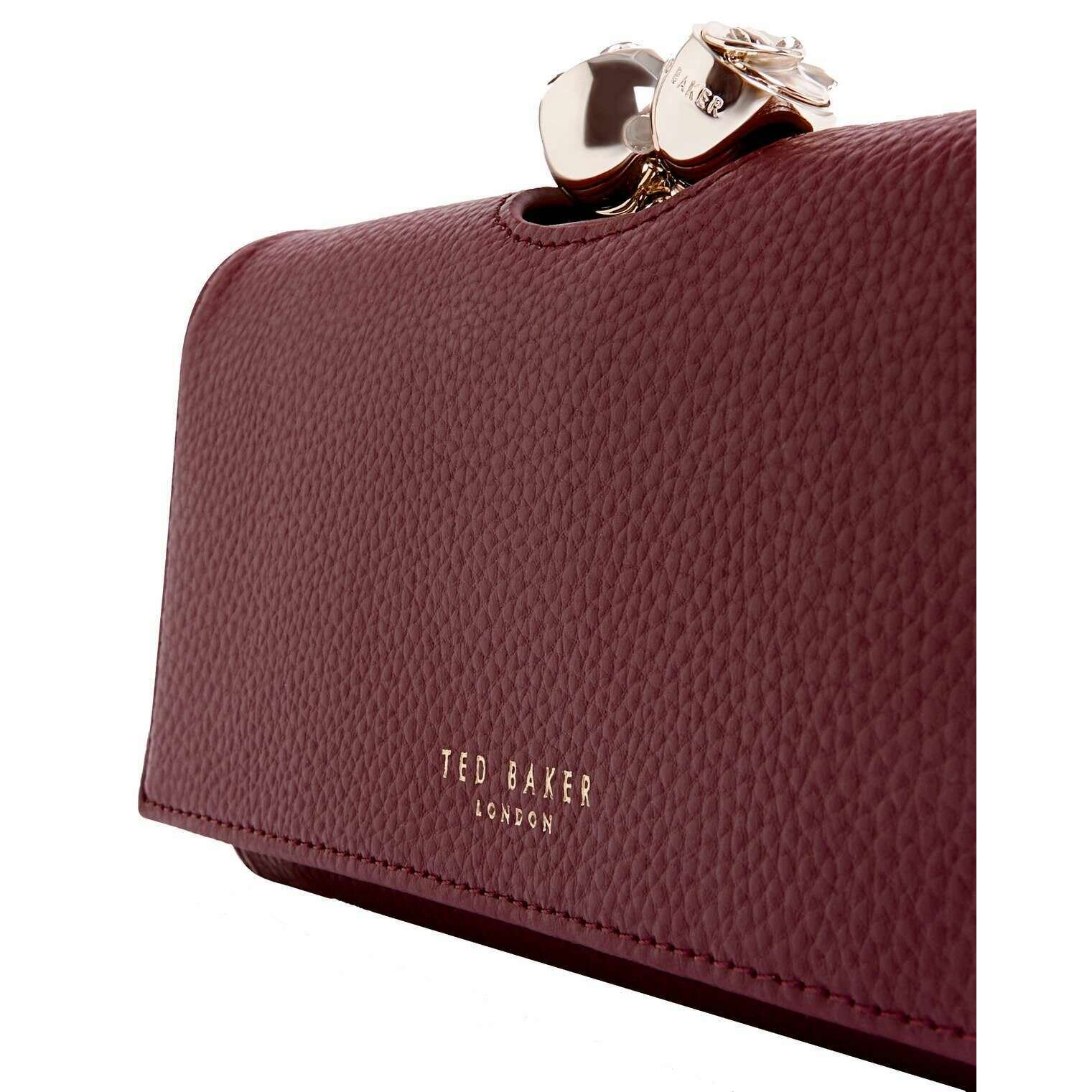 Monedero grande con pompón de cuero y detalle de rosa Roosali de Ted Baker - Vino Borgoña