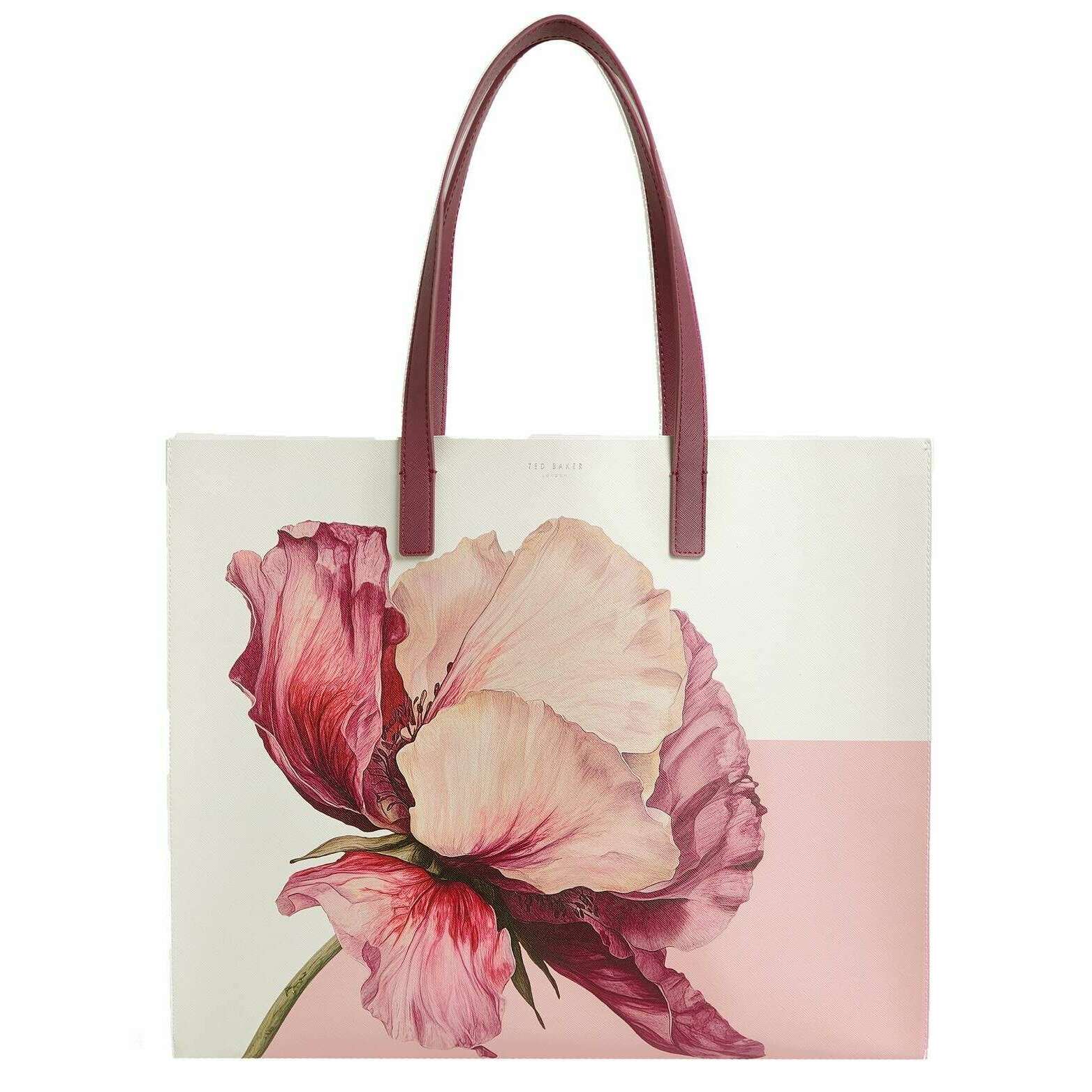Bolso Icon extra grande con estampado floral Shelien de Ted Baker - Crema Marfil/Rosa Rosa