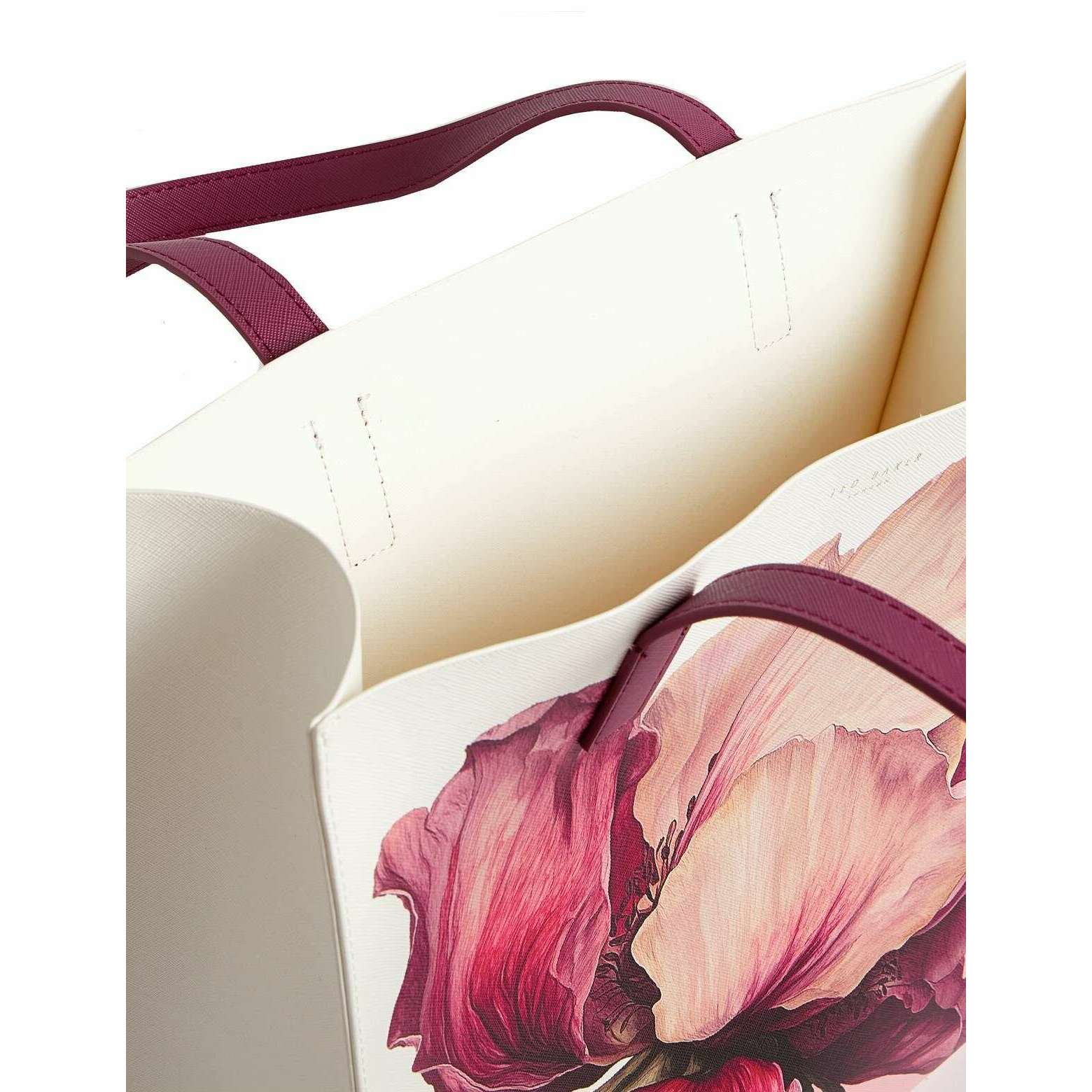 Este bolso icónico mediano con flores y estampado Shilva para mujer de la marca Ted Baker está hecho de 100% poliuretano y se presenta en rosa. Mide 36 cm (alto) x 34,5 cm (ancho) x 13 cm (profundidad). Todas las bolsas vienen completas con embalaje de Ted Baker. El bolso Icon mediano con flores estampadas Shilva de Ted Baker - Crema marfil/rosa rosa es un bolso tote de tamaño mediano esencial para el uso diario. Exhibiendo un hermoso motivo floral con un fondo neutro y asas superiores en contraste. Ofrece un interior espacioso, perfecto para guardar lo esencial, es fácil de limpiar y está diseñado para el uso diario con un acabado de alta gama. Hay una impresión en la base y una marca en relieve en el frente.