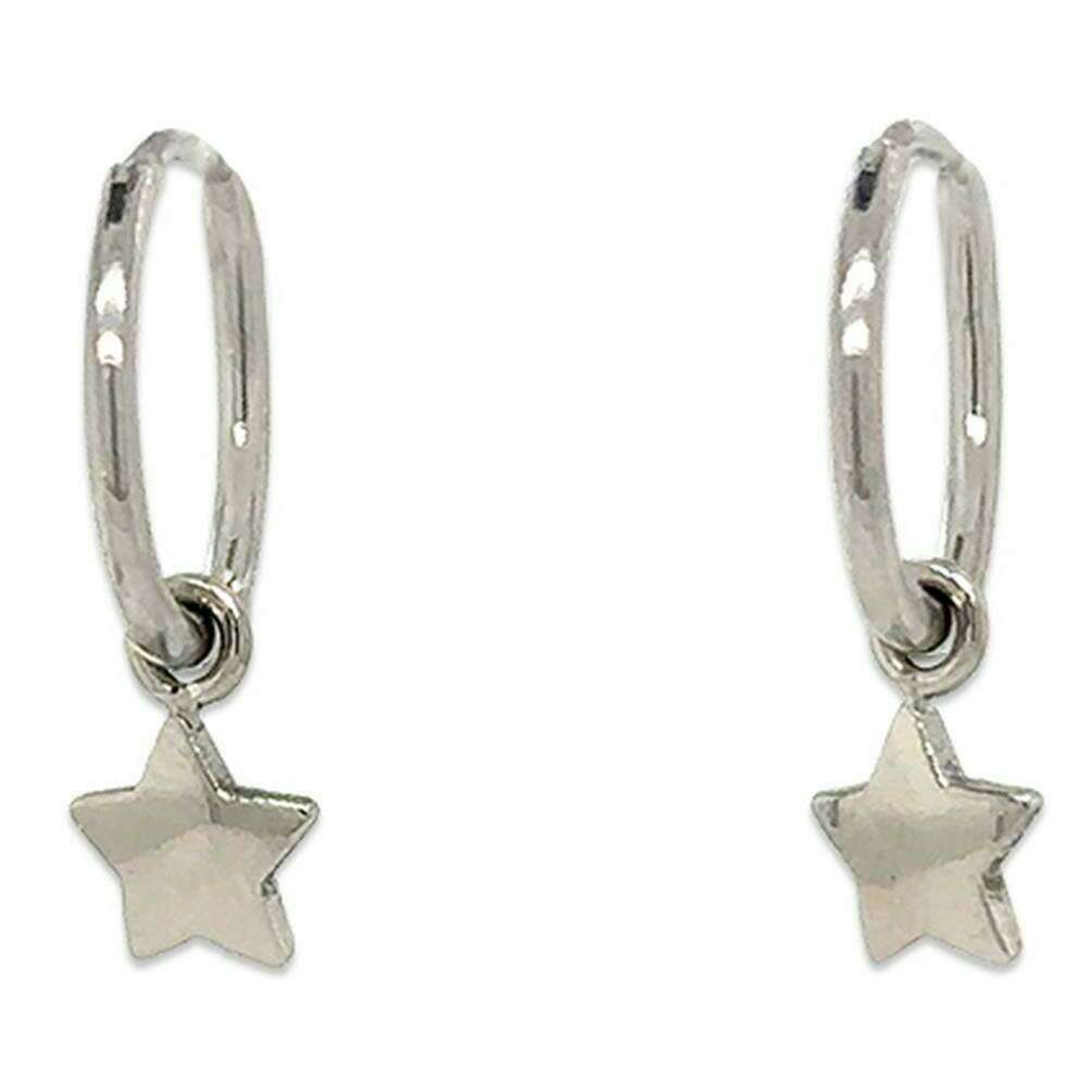 Pendientes de aro de encanto de estrella de titanio TI2 - plata pulida natural