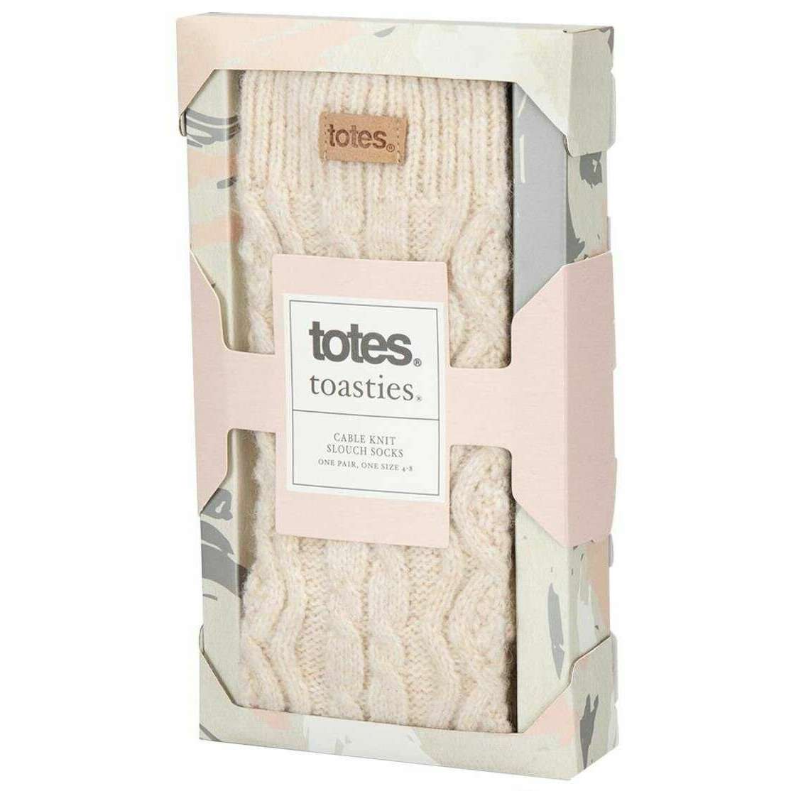 Totes Toasties Calcetines tipo pantuflas holgados de punto trenzado - Crema de avena