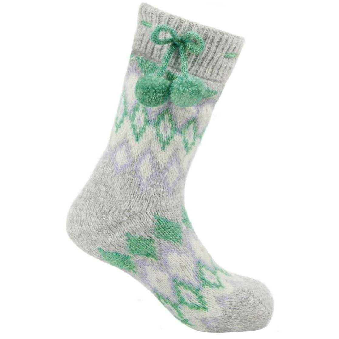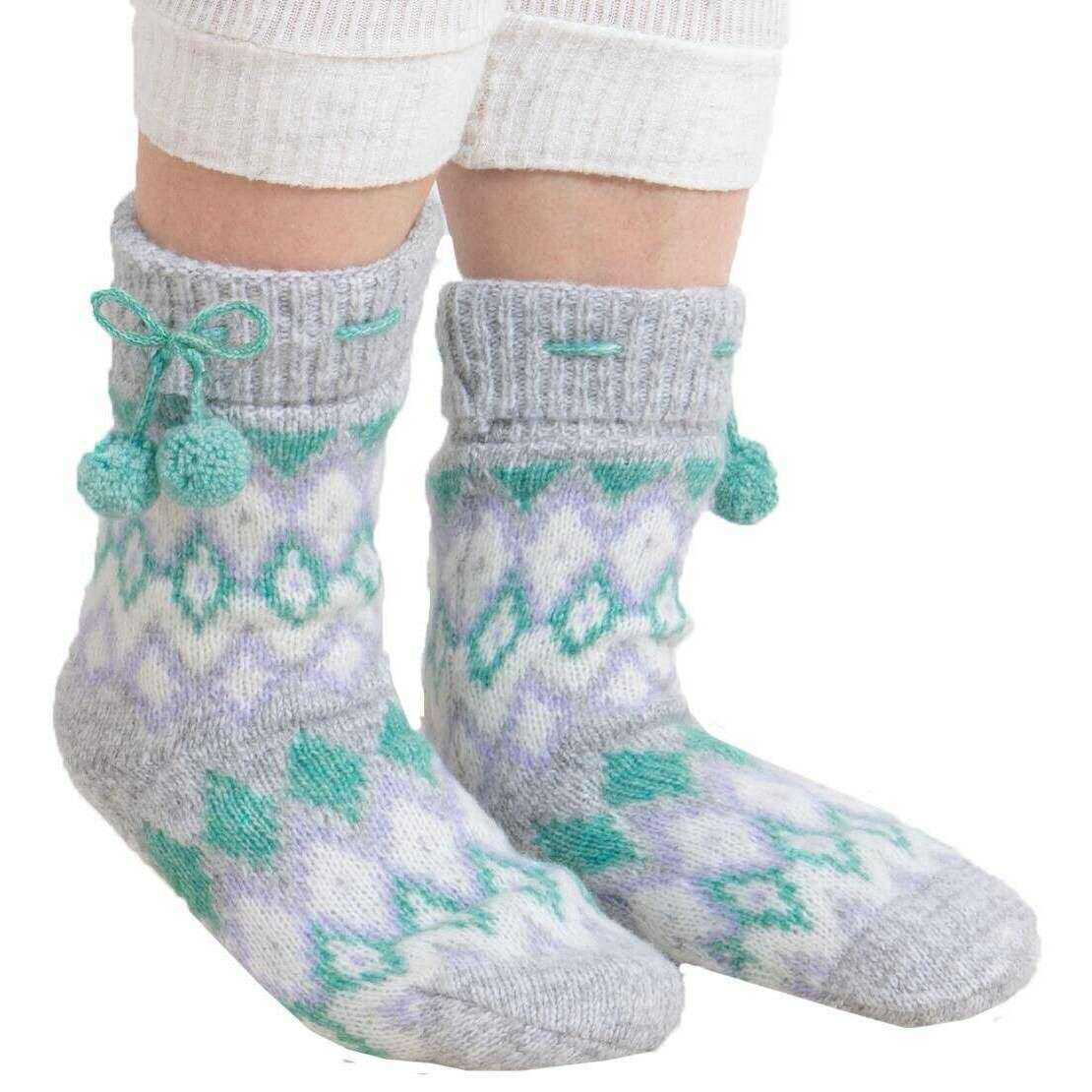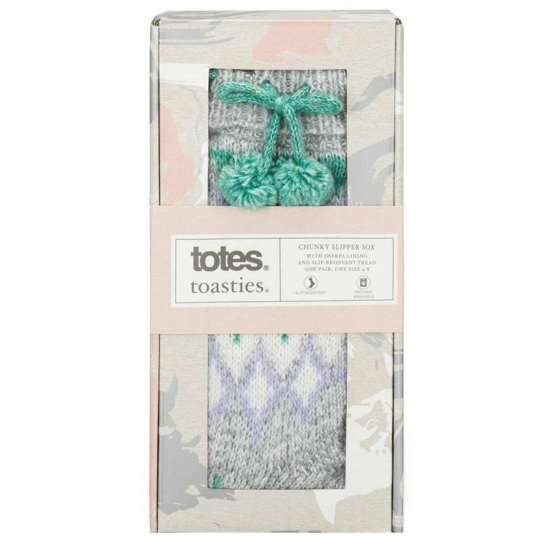 Totes Toasties Fair Isle Chenille Slipper Calcetines - Gris/Verde/Púrpura